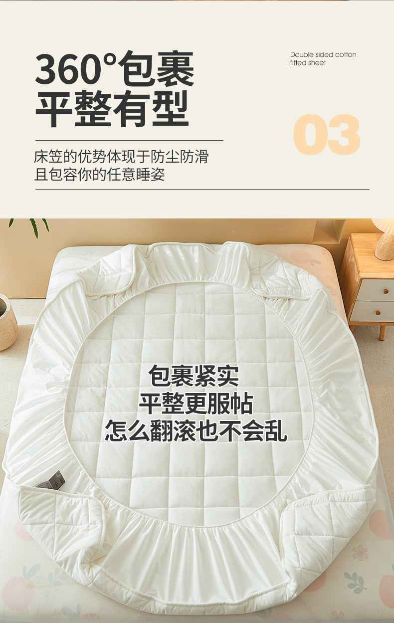 3C 2024新款柔软亲肤全棉双面床笠 雅白