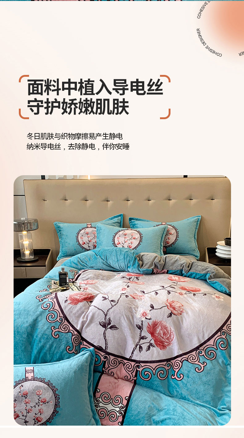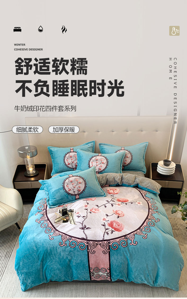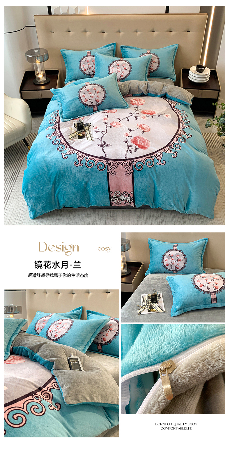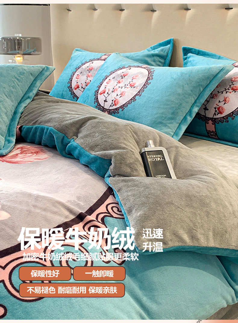 商品名称:喜梦缘 2025新款大版花卉牛奶绒四件套 镜花水月-兰
