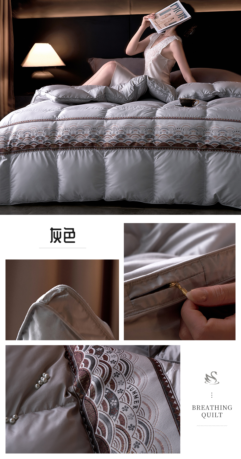 总岚司羽 新款羽绒被子95%优质白鹅绒冬被芯-格瑞维雅,格瑞维雅-白色,格瑞维雅-灰色,格瑞维雅-豆沙