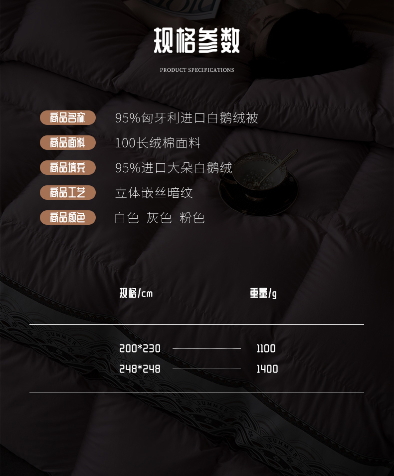 商品名称:(总)岚司羽 2024新款95%优质白鹅绒大朵羽绒被-媚人鱼羽绒被净版款式