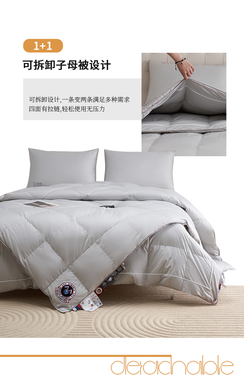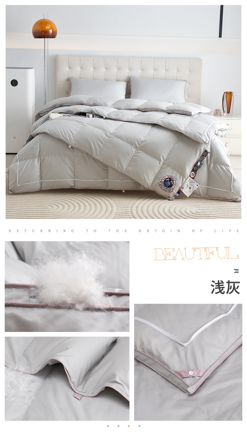 新款95%优质白鹅绒全棉羽绒被子母被,灰色,本白,浅灰,浅驼,香芋