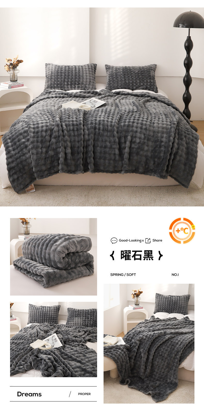商品名称:同田家纺 2024新款A类纯色兔绒毛毯 曜石黑