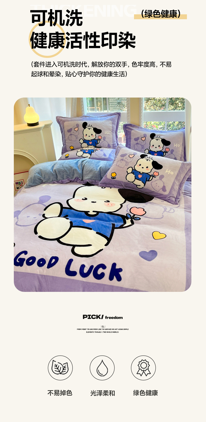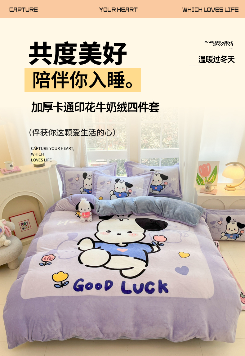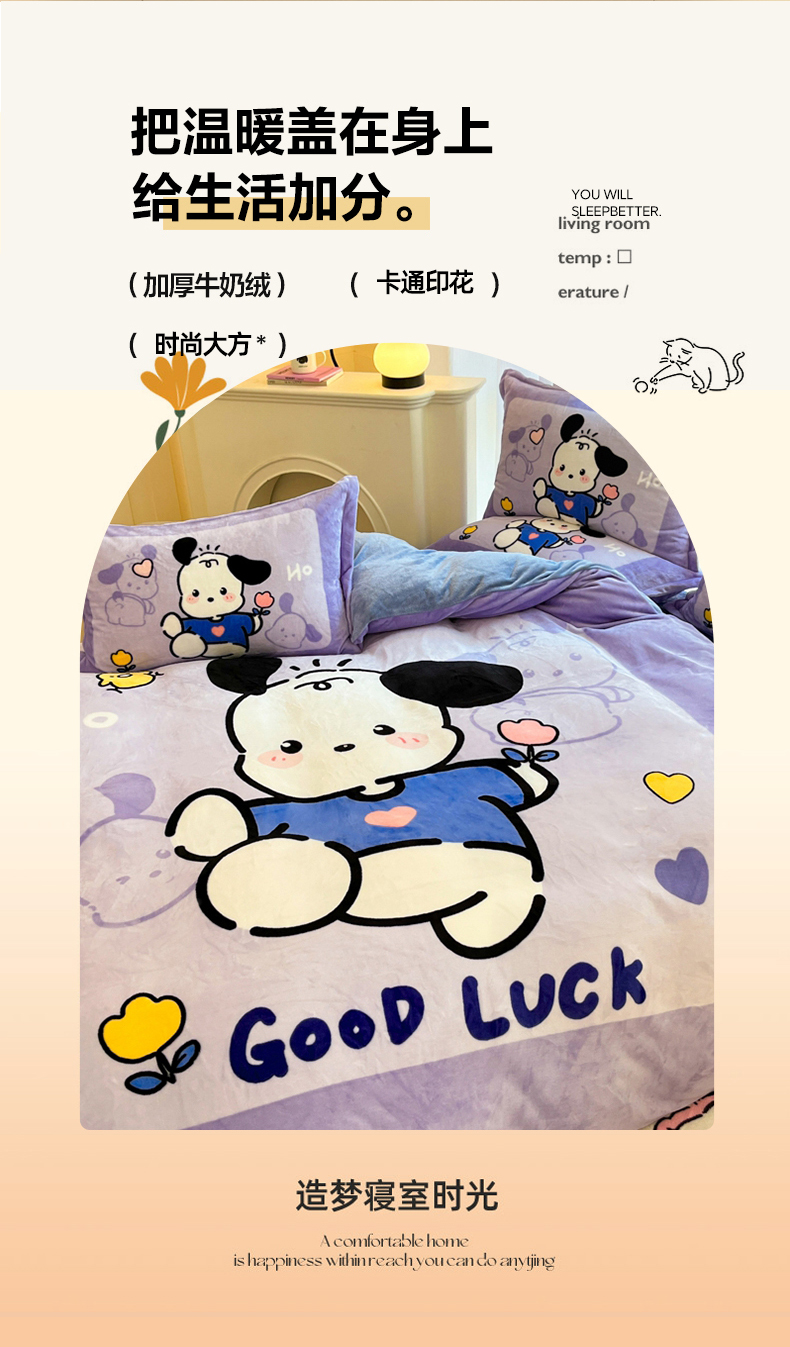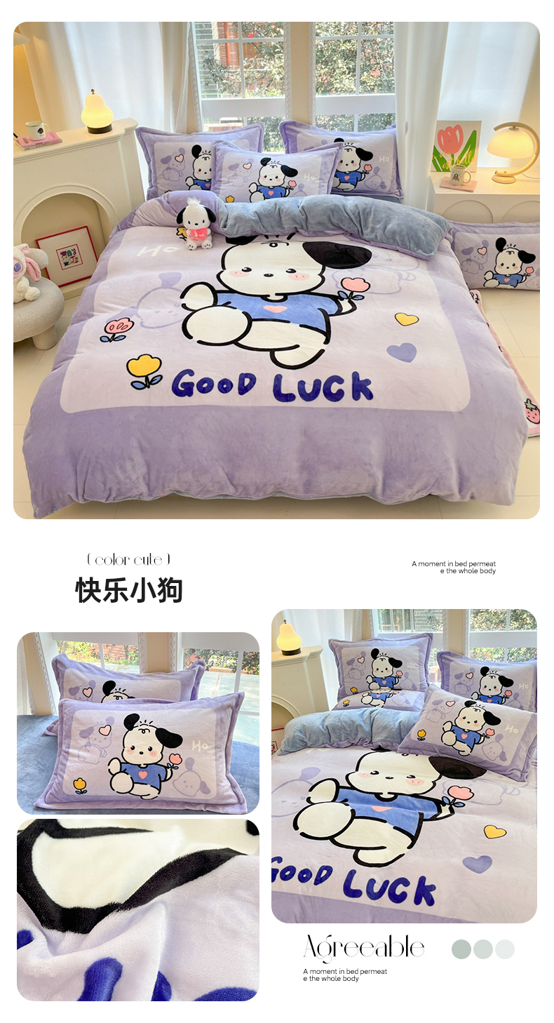 当前位置: 91家纺网 > 商品网购 > 床品套件 > 四件套 > 牛奶绒四件套 > 喜梦缘-2025新款大版卡通牛奶绒四件套 快乐小狗