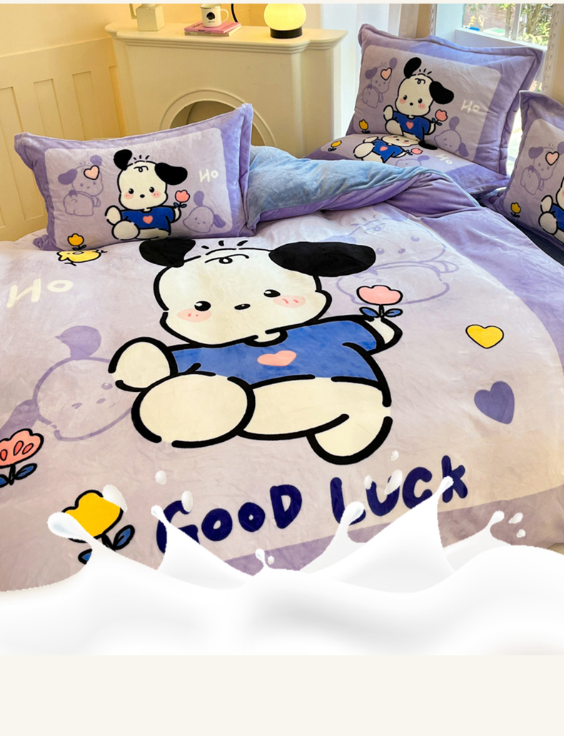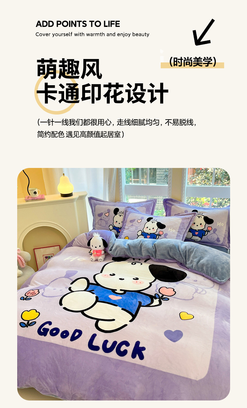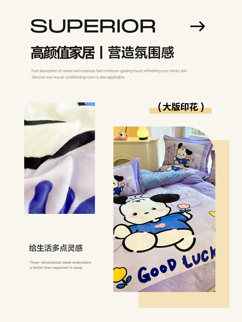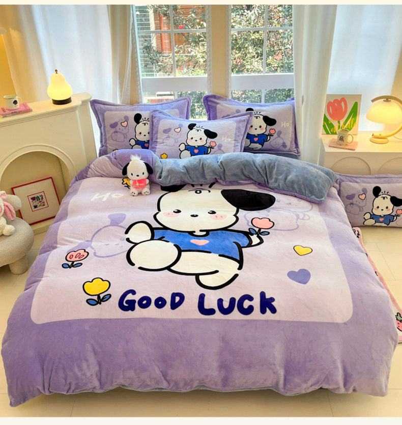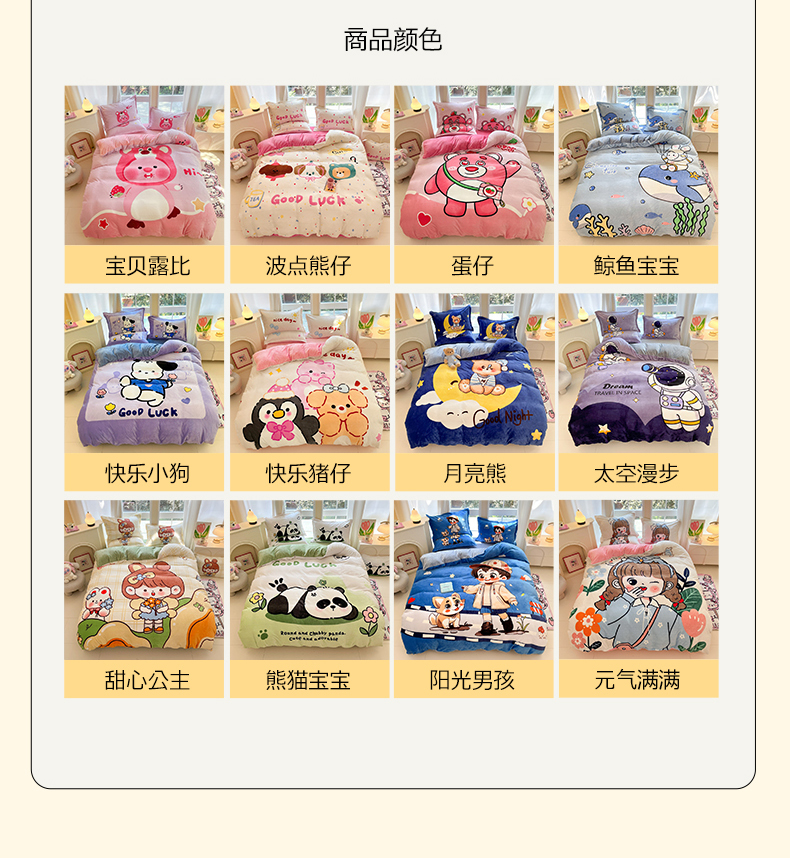 当前位置: 91家纺网 > 商品网购 > 床品套件 > 四件套 > 牛奶绒四件套 > 喜梦缘-2025新款大版卡通牛奶绒四件套 快乐小狗
