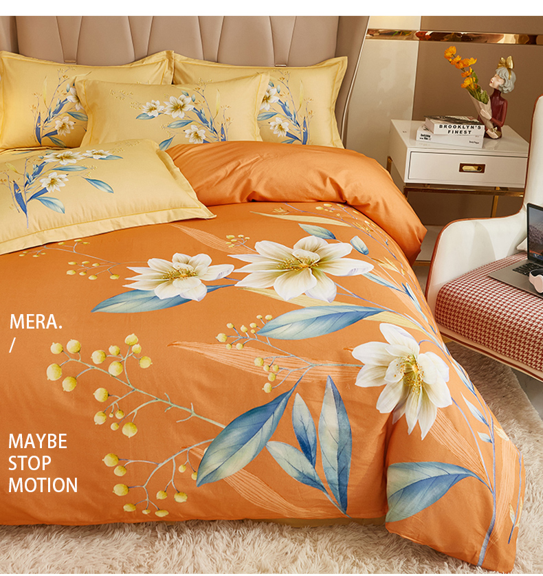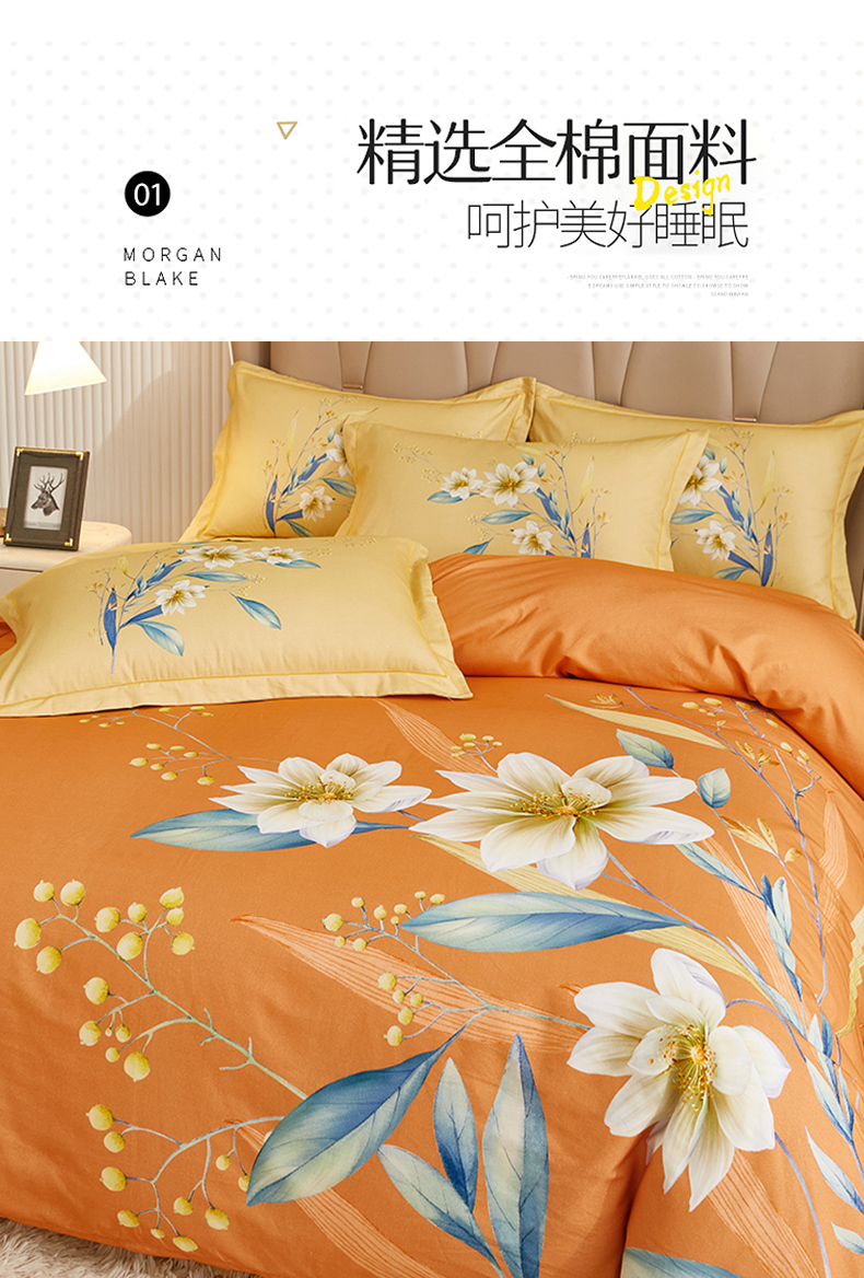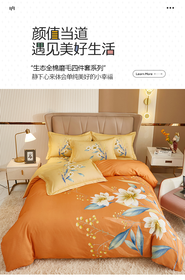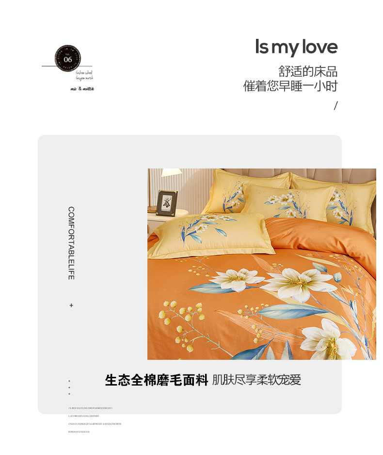 商品名称:雲归梦 2024新款加厚全棉生态磨毛大版四件套 醉花听风-桔