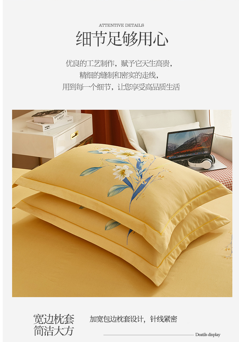 (总)雲归梦 2021新款全棉生态磨毛刺绣四件套,慕思-橙色,慕思-粉紫,慕思-灰,慕思-米黄,慕思-青绿,慕思-天蓝