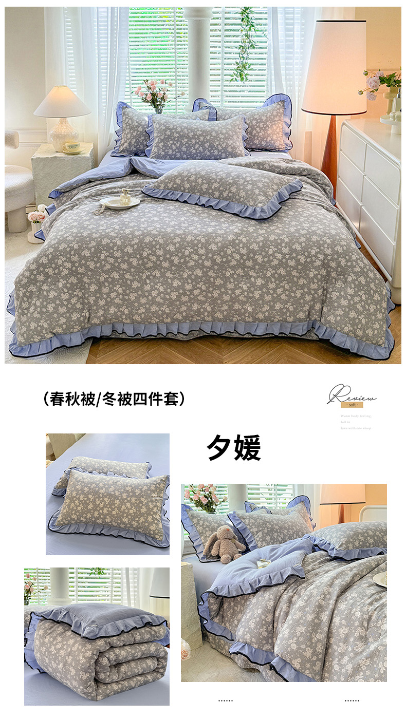 • 91家纺网 家纺一手货源 找家纺 韩约家纺 2025新款1针织棉皱皱纱床单款夏凉被春秋被冬被四件套 夕媛