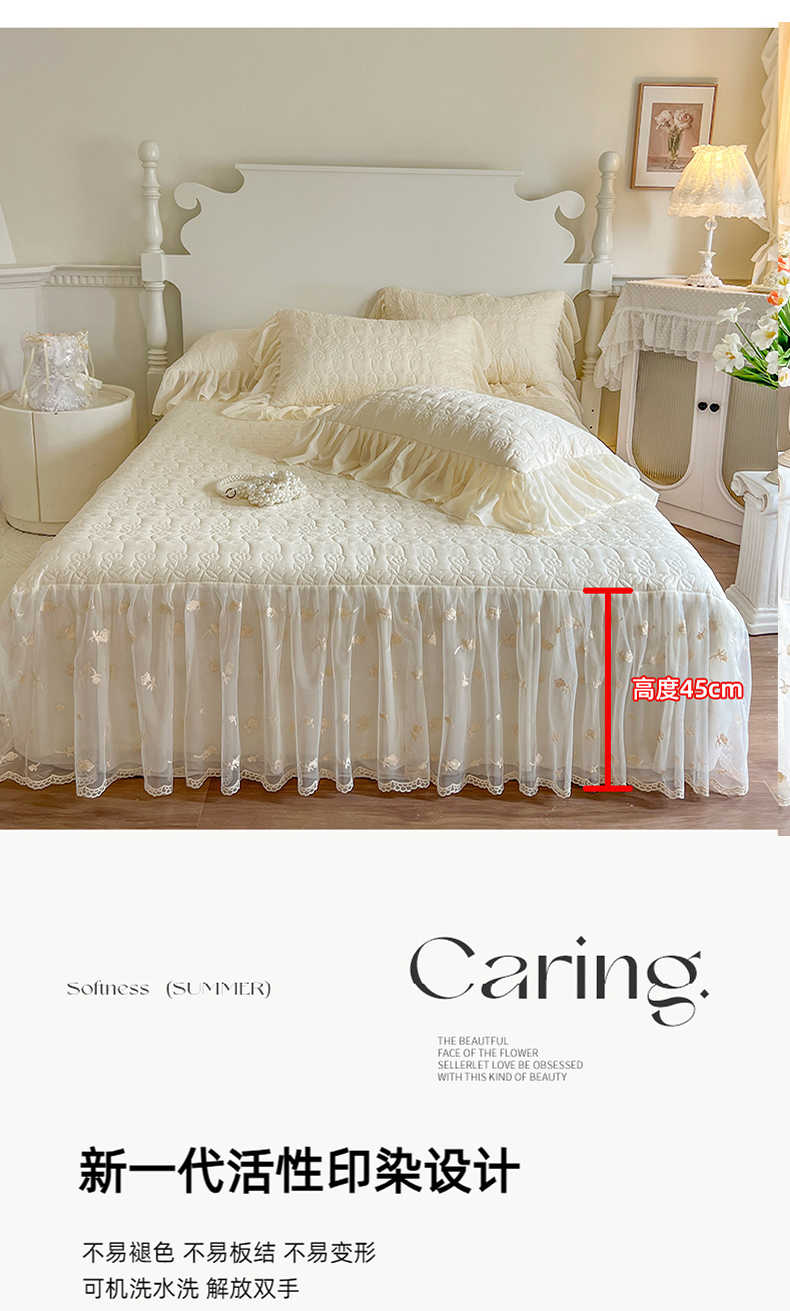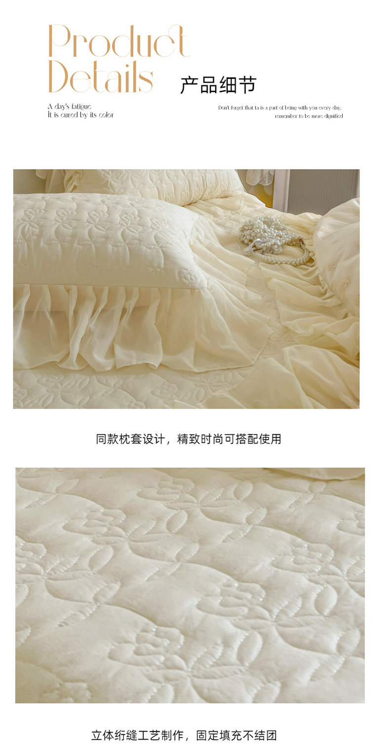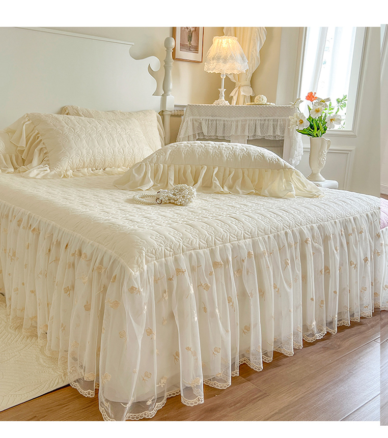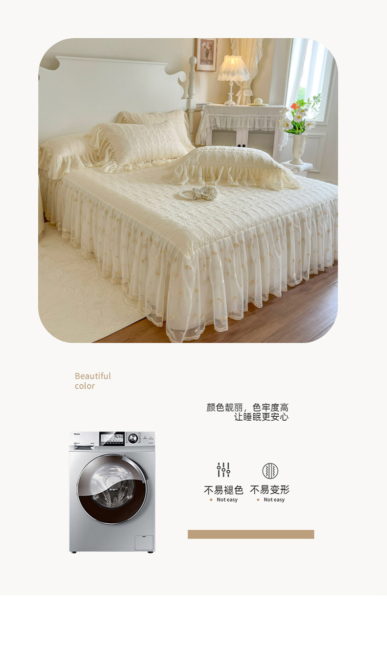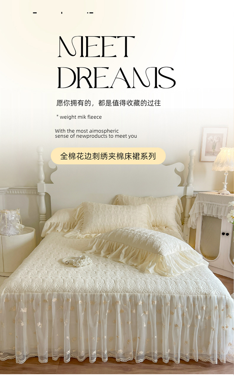 商品名称:网红馆 2025新款全棉床裙三件套-玫瑰花园 奶昔