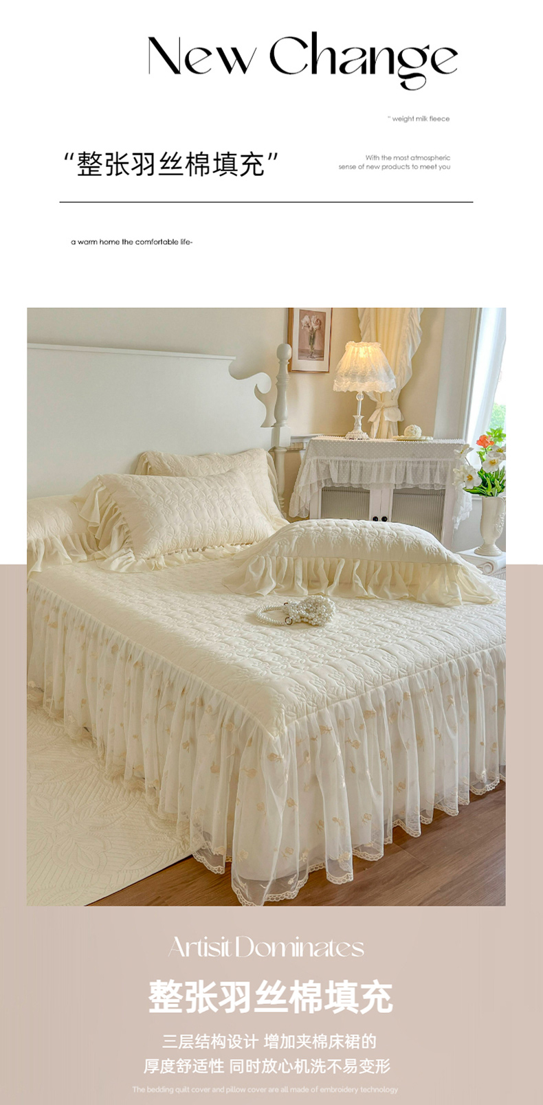 网红馆 2025新款全棉床裙三件套-玫瑰花园 奶昔