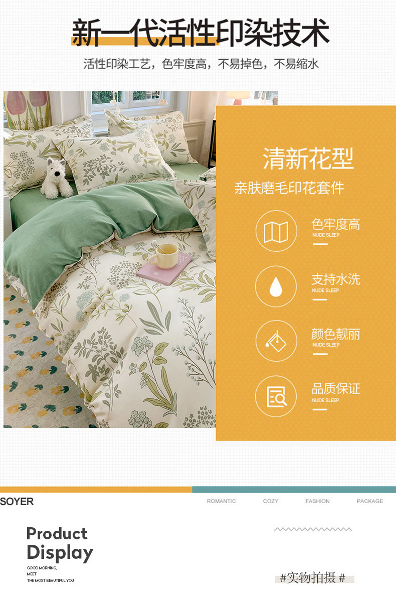 商品名称:世爵家纺 2025新款亲肤印花磨毛四件套 山谷兰草