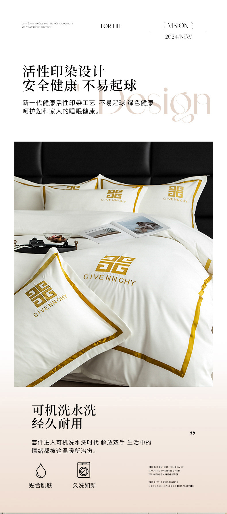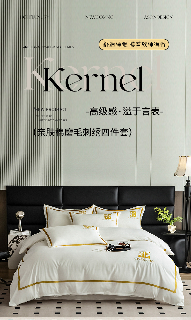 商品名称:(总) 2025新款轻奢酒店风纯色水洗棉亲肤磨毛刺绣款四件套-提供买家秀