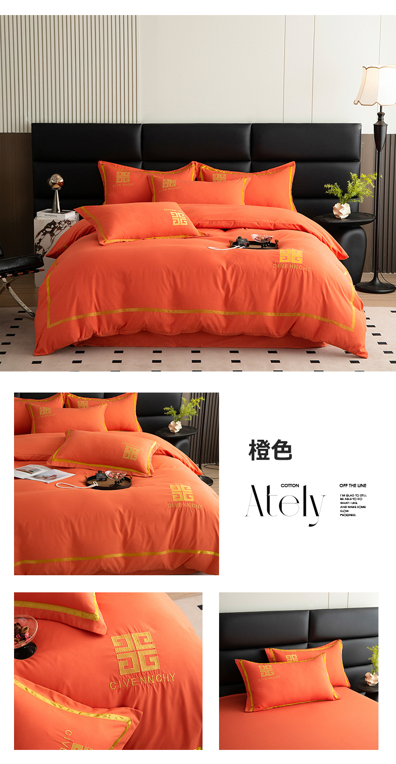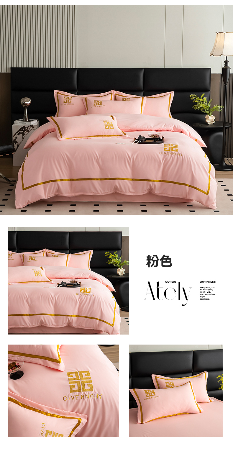 (总) 2025新款轻奢酒店风纯色水洗棉亲肤磨毛刺绣款四件套-提供买家秀
