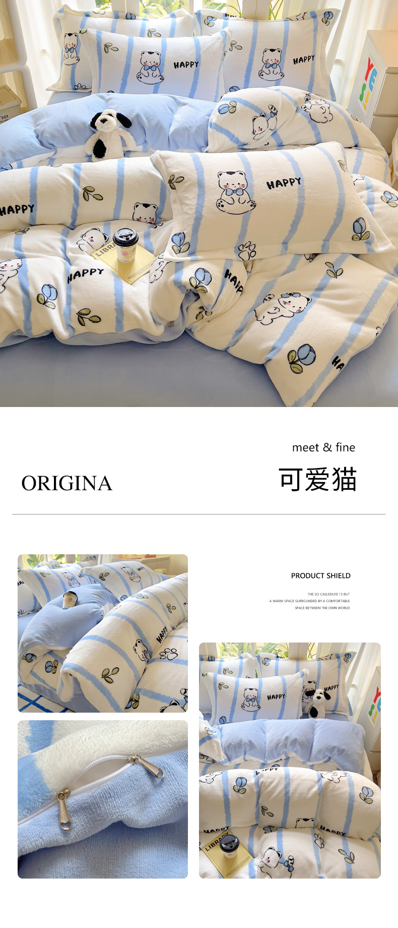 当前位置: 91家纺网 > 商品网购 > 床品套件 > 四件套 > 牛奶绒四件套 > 丝羽坊 2024新款加厚小清新牛奶绒印花四件套单被套床笠四件套-场景二 可爱猫
