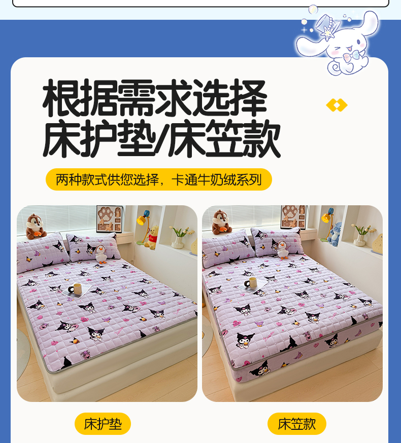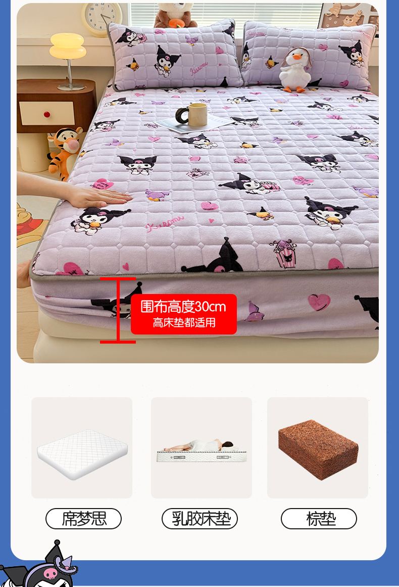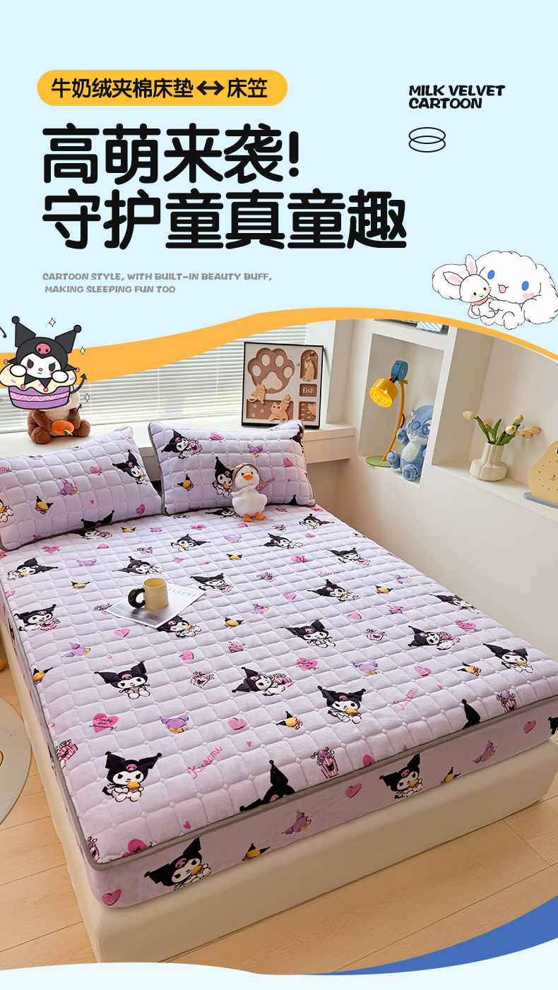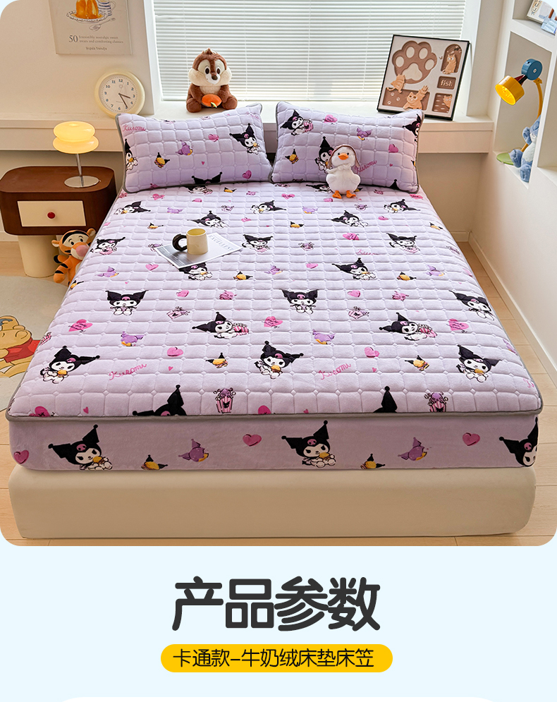 商品名称:迪梦思 2024新款正版授权卡通牛奶绒床垫床护垫 学生床垫床笠 魔法库洛米-床垫款