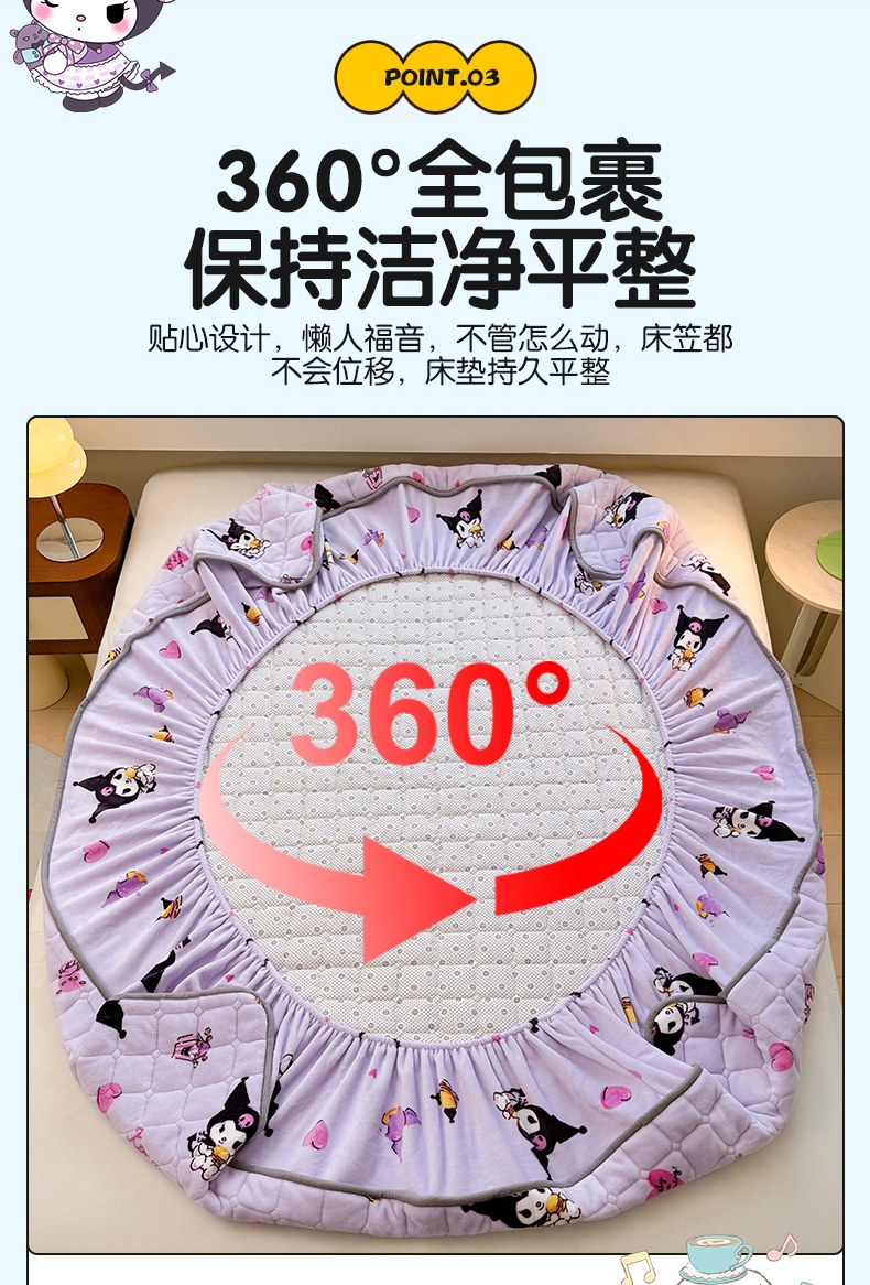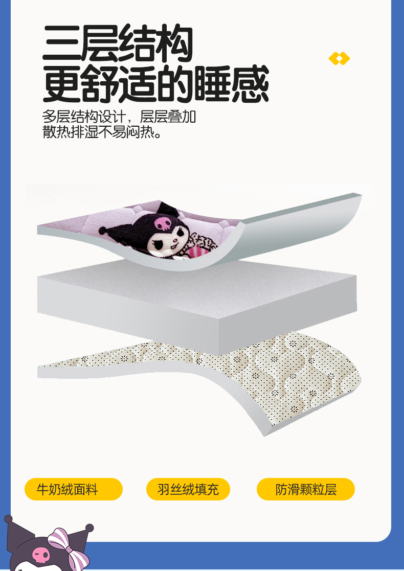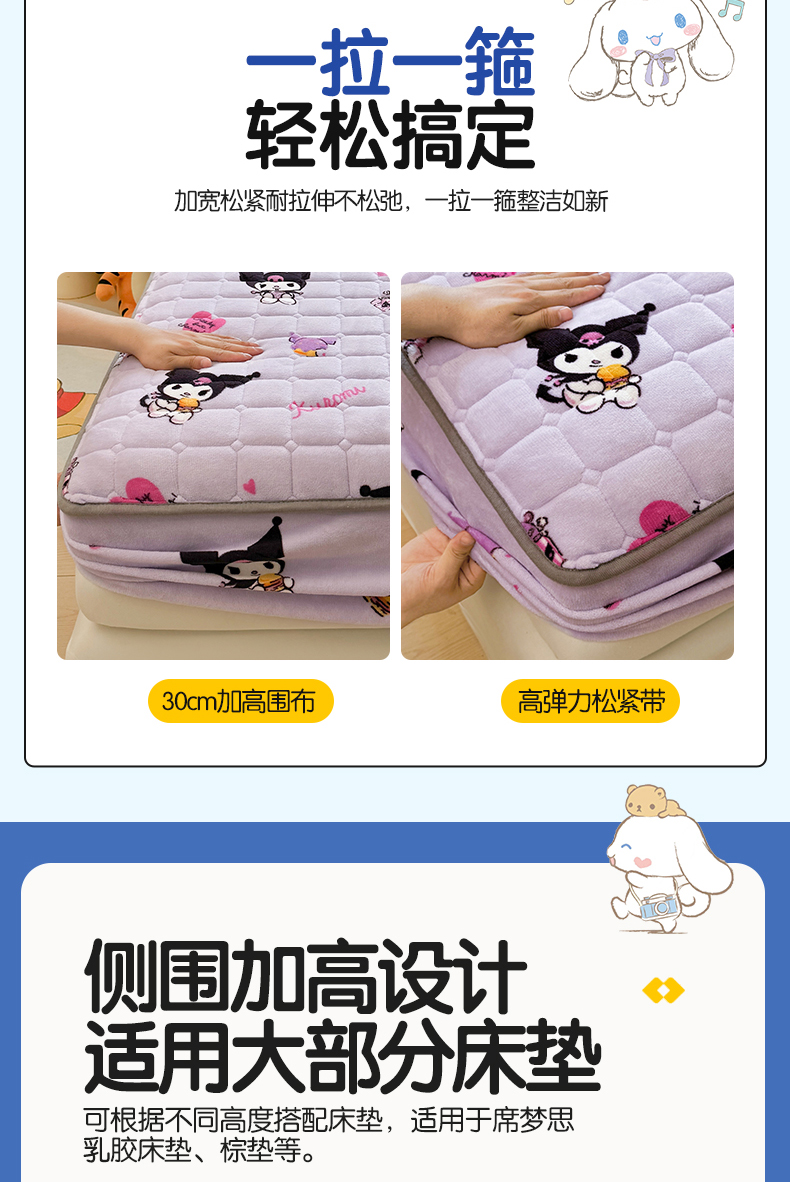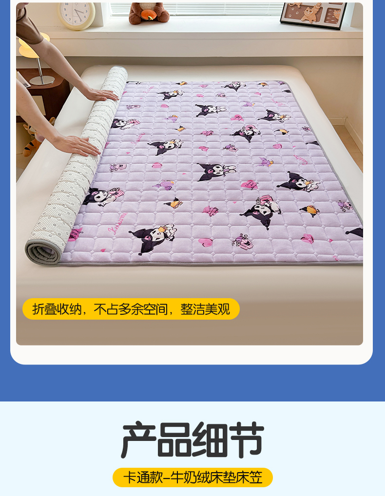 商品名称:迪梦思 2024新款正版授权卡通牛奶绒床垫床护垫 学生床垫床笠 魔法库洛米-床垫款