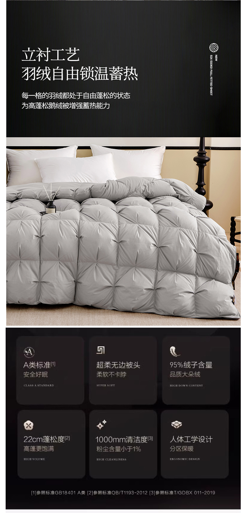 220*240cm填充量1500克 精选国标大朵5A级95%白鹅绒