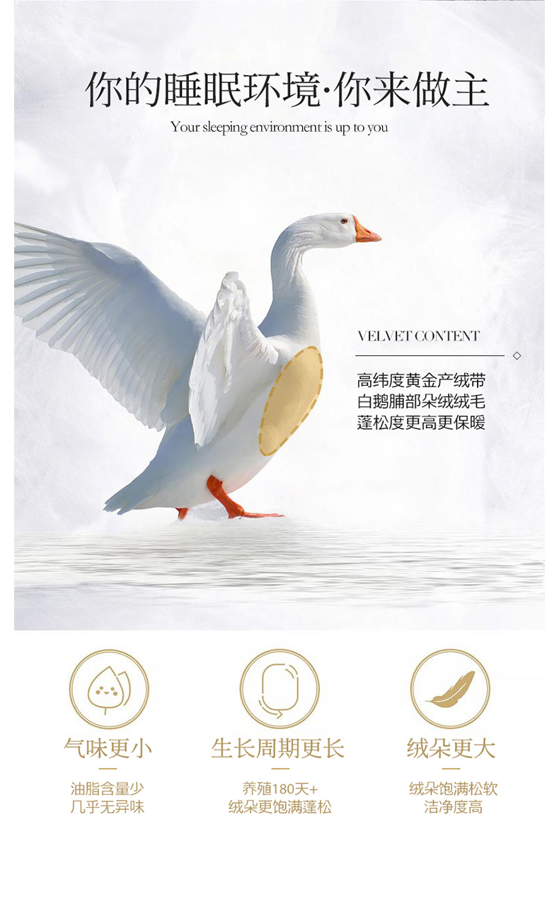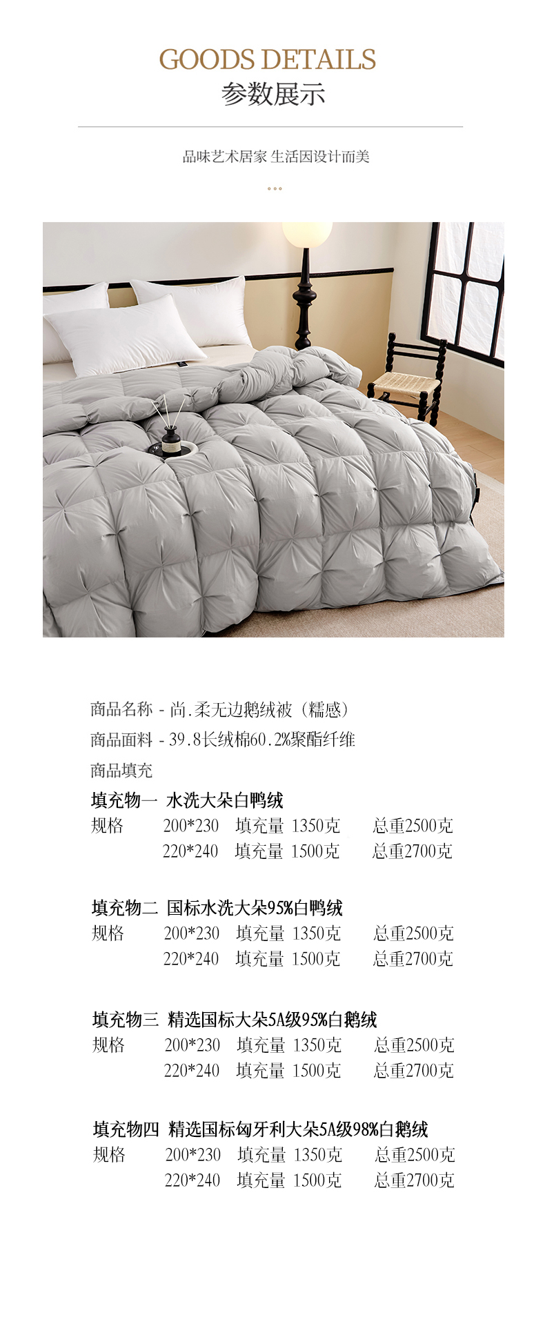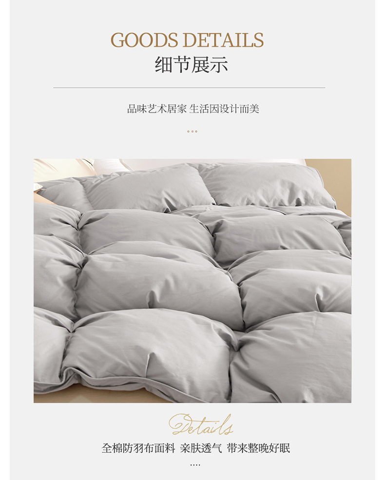 200*230cm填充量1350克精选国标大朵5A级95%白鹅绒