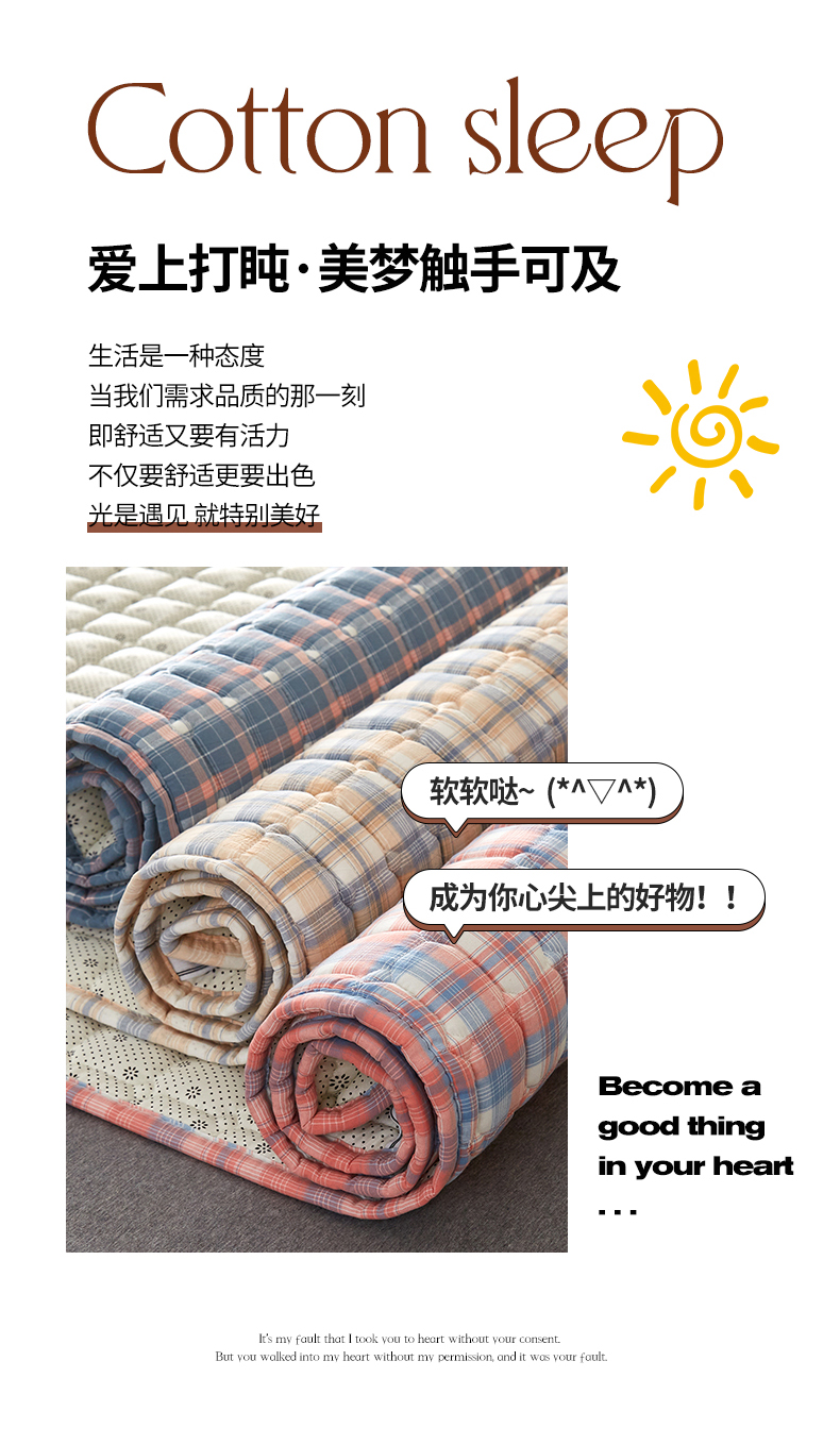 当前位置: 91家纺网 > 商品网购 > 床垫/床褥 > 普通床垫 > 祁恋婷 2024新款全棉水洗棉棉花床护垫 冰淇淋