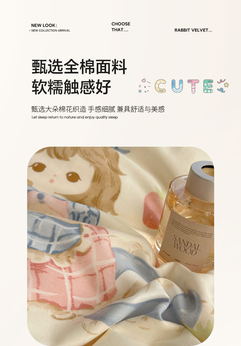 (总)六巷胡同 2025新款INS童趣可爱风卡通全棉四件套-第四系,彩虹甜筒猫,草莓害羞喵,粉格元气猫,咖格樱桃狗,蓝格嗨皮狗,圣诞麋鹿狗,仙人掌粉象,熊熊猫咪崽