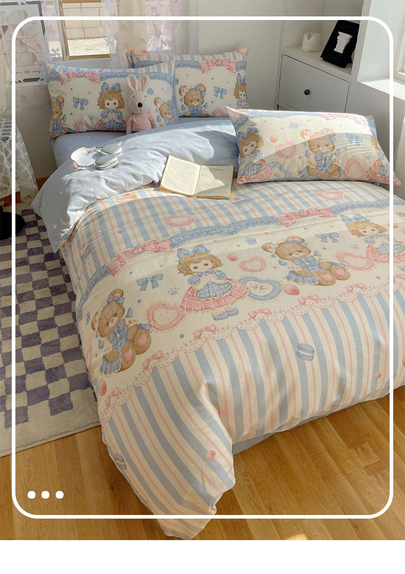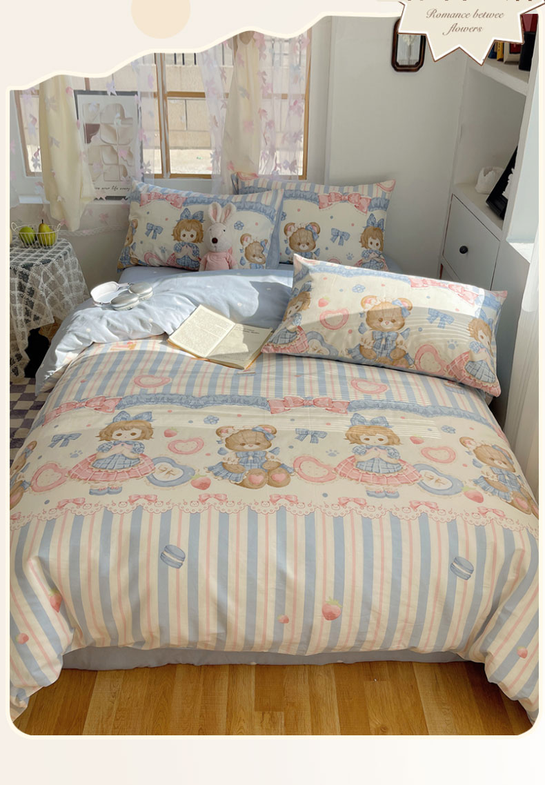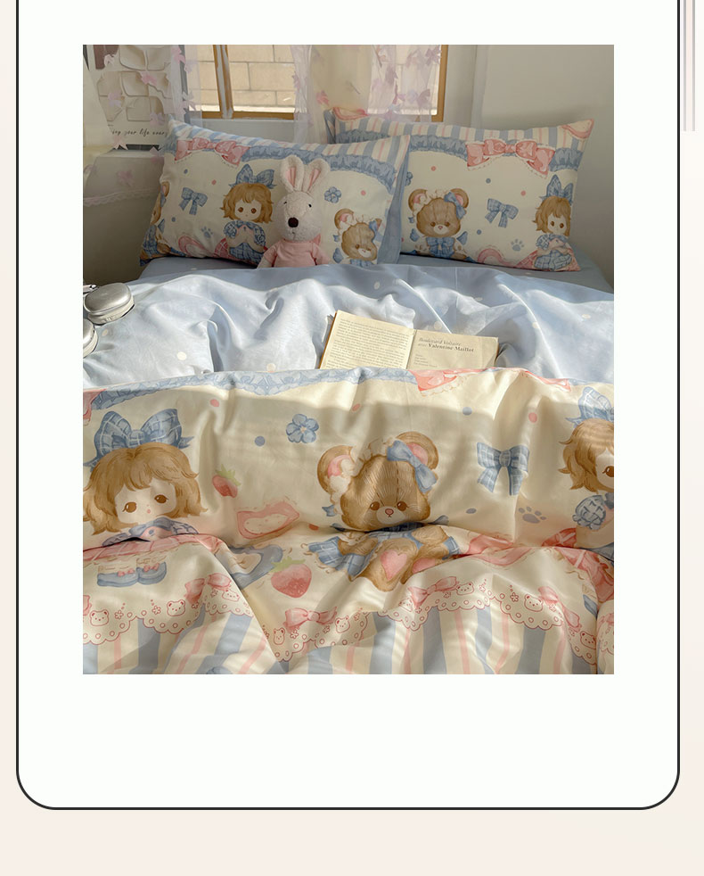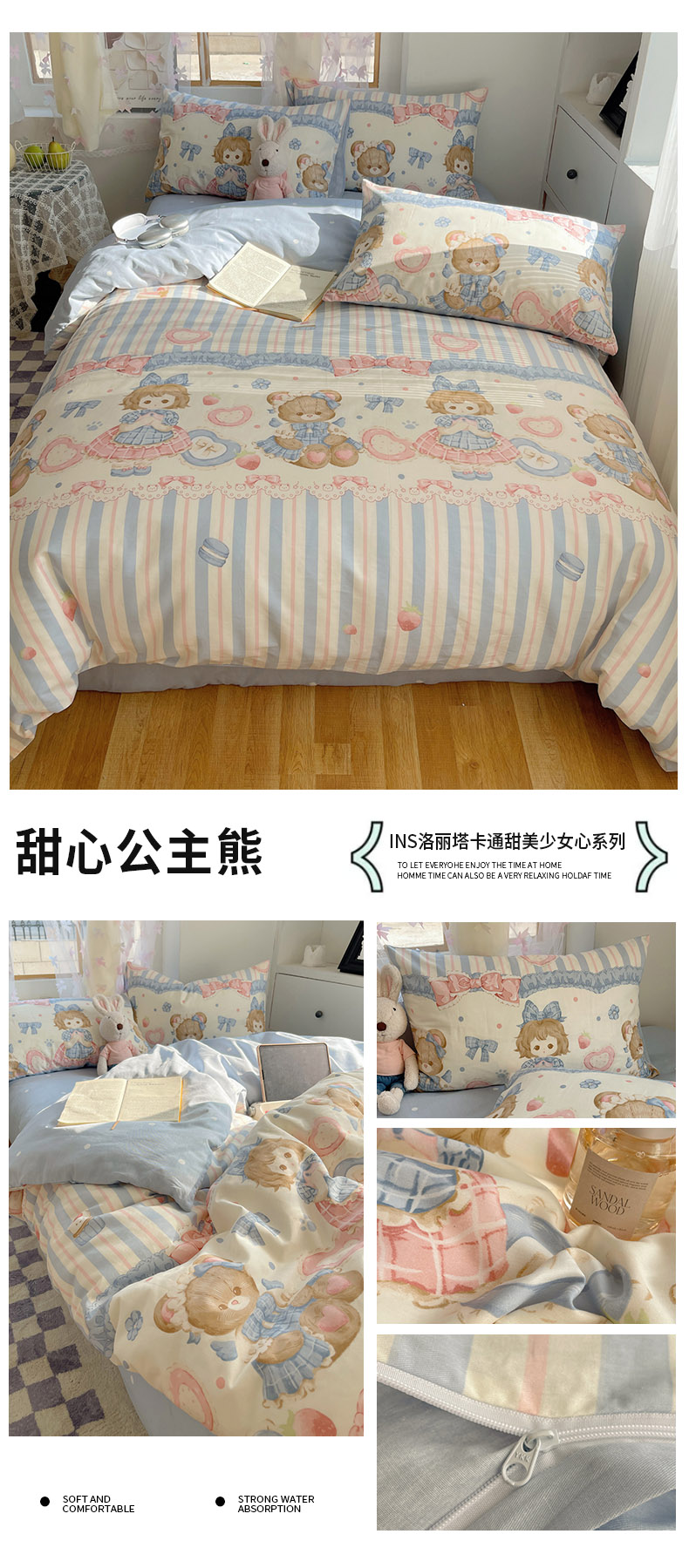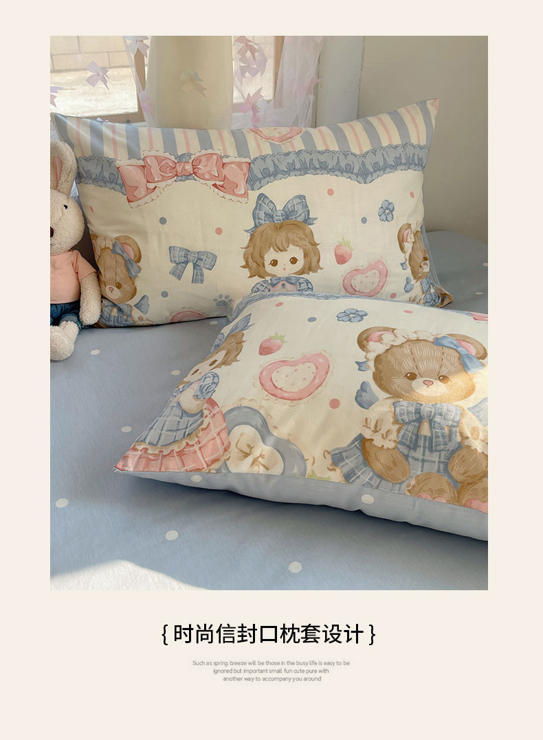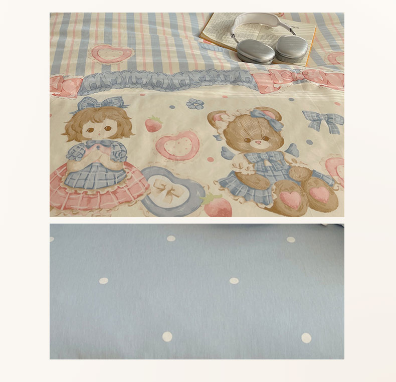 六巷胡同 2024新款40支全棉纯棉INS洛丽塔卡通甜美少女心系列四件套 甜心公主熊