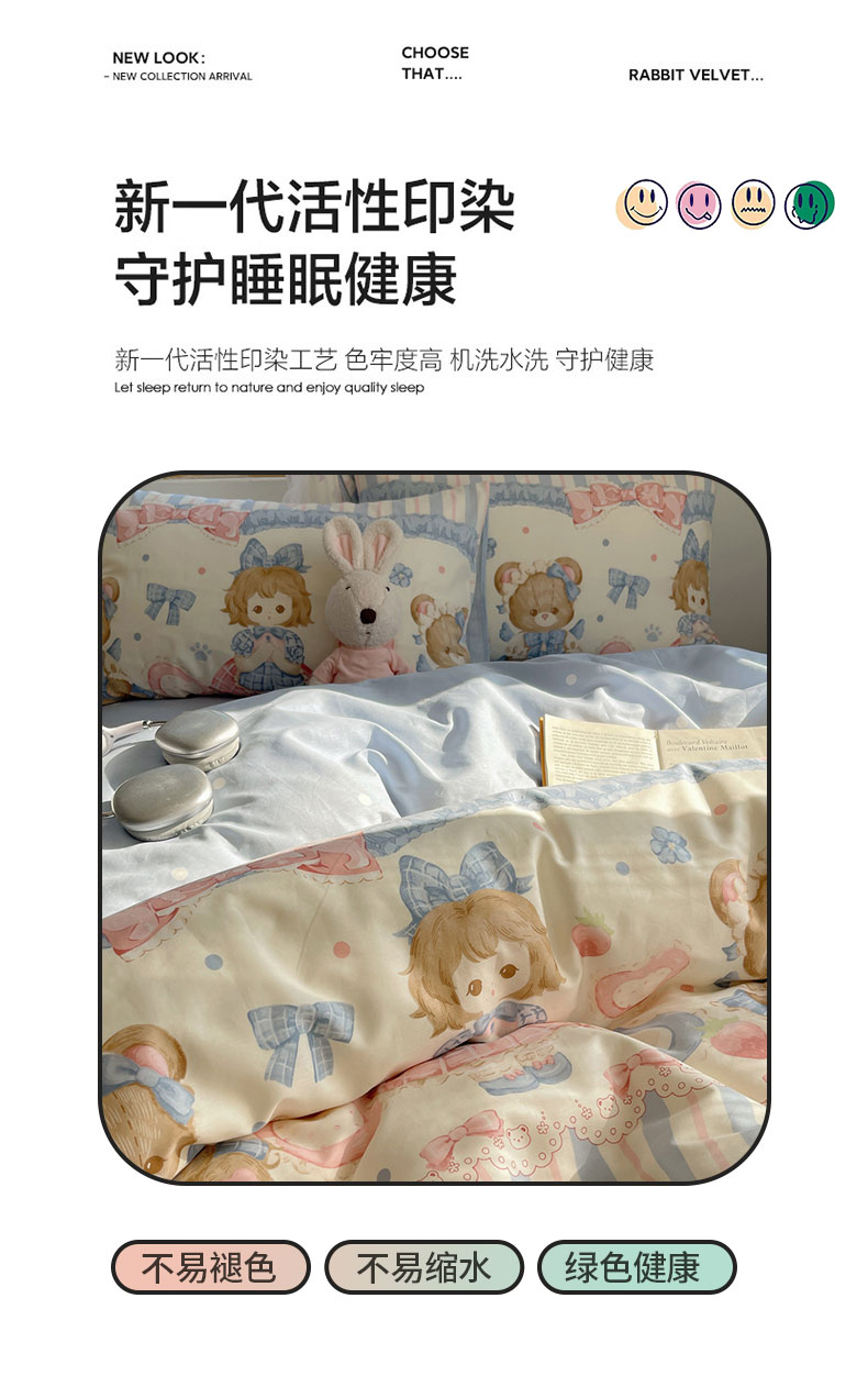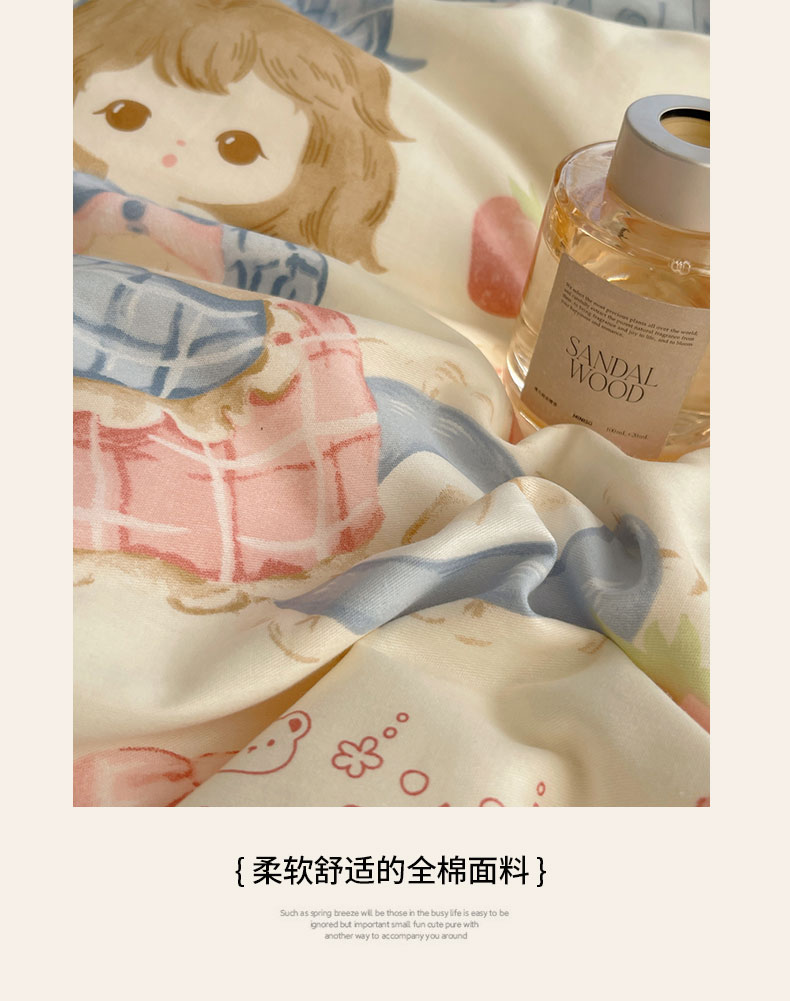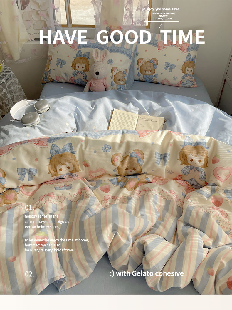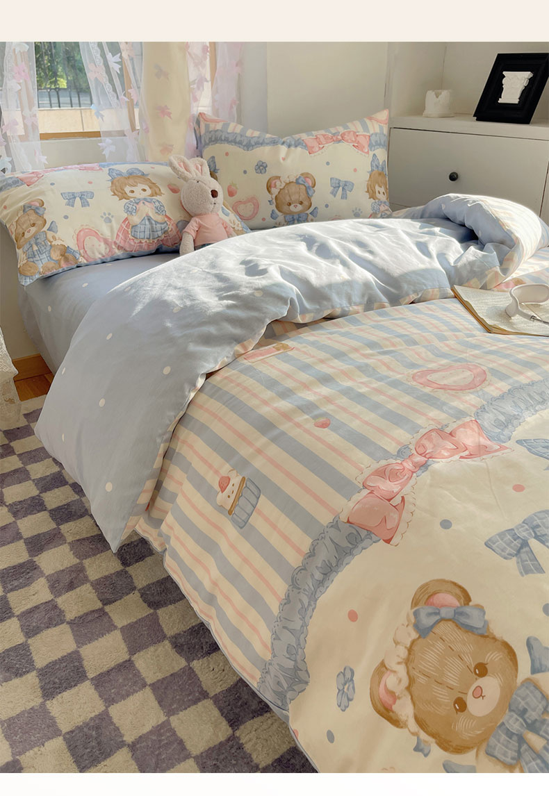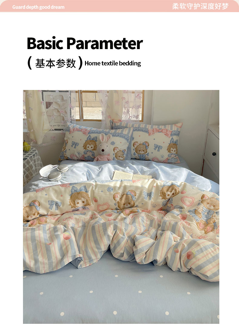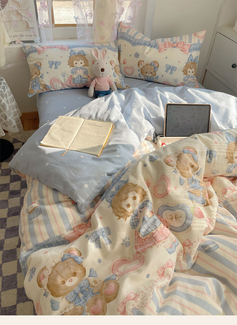 六巷胡同 2024新款40支全棉纯棉INS洛丽塔卡通甜美少女心系列四件套 甜心公主熊