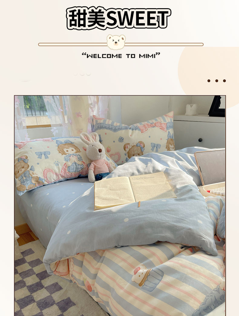 (总)六巷胡同 2025新款INS卡通童趣混搭风全棉四件套第二系,混搭-蛋糕围兜熊,混搭-奶油酣睡熊,混搭-奈斯羞羞狗,混搭-小蓝格甜点,混搭-雪糕哈皮熊,混搭-月亮睡睡熊