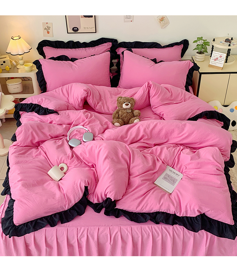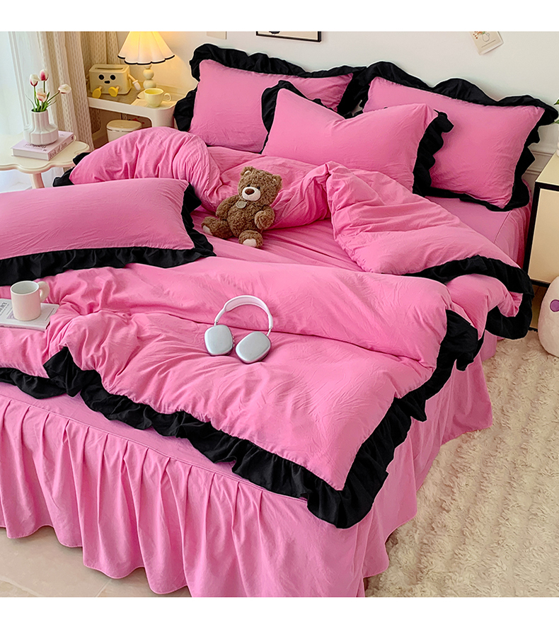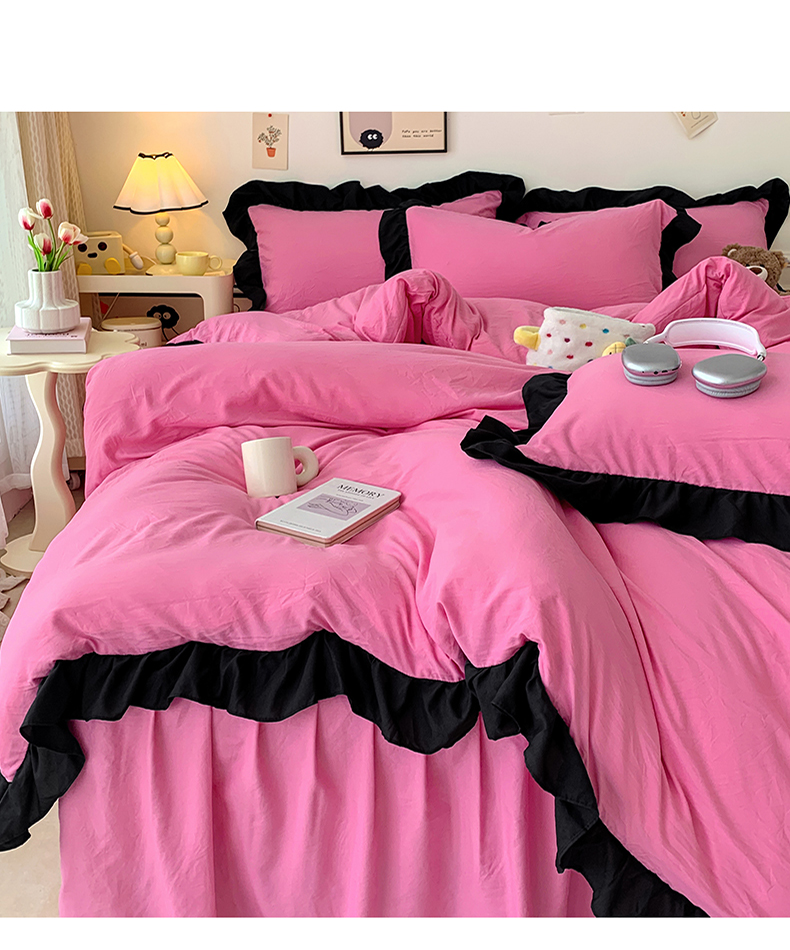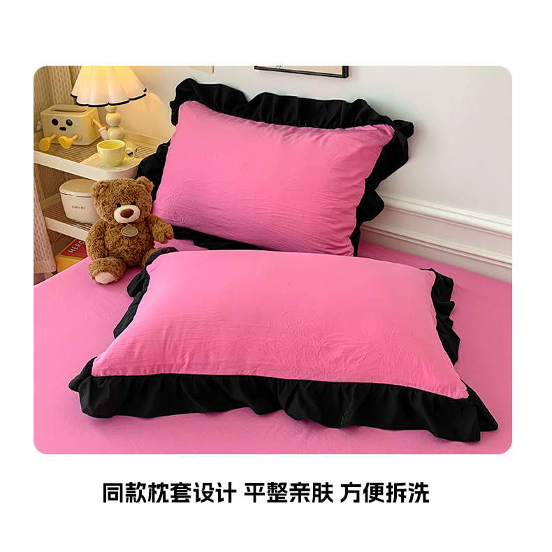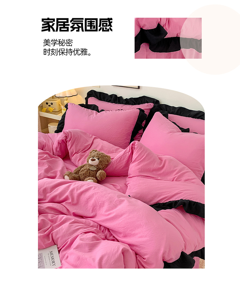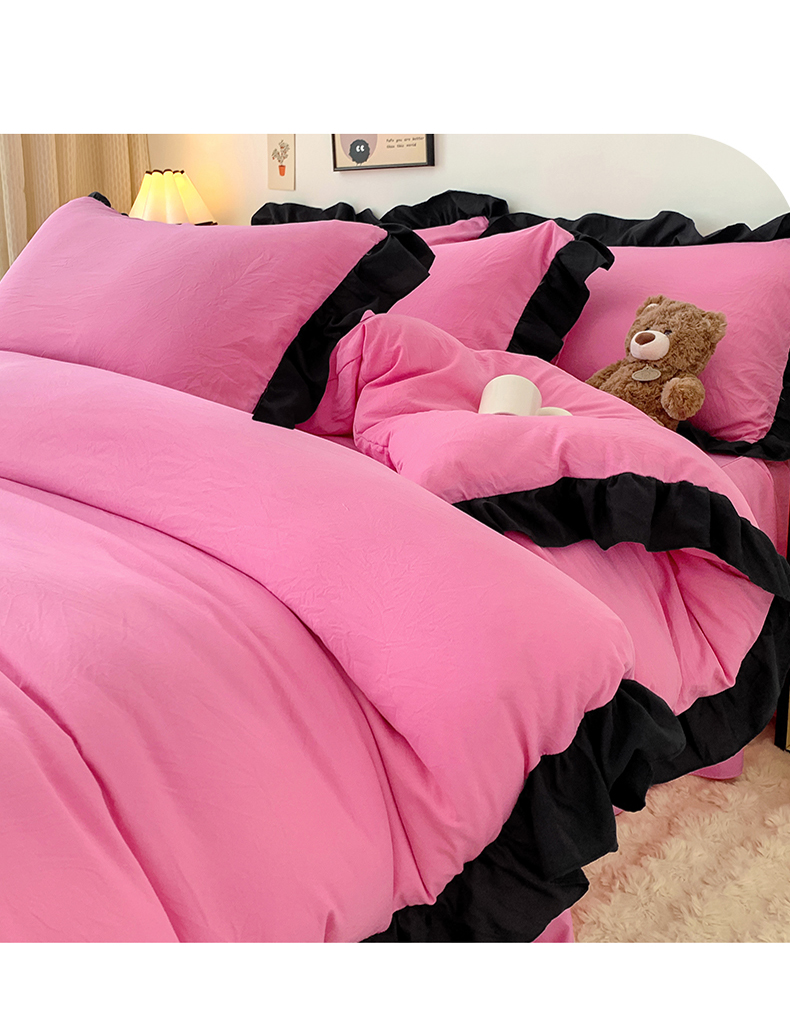当前位置: 91家纺网 > 商品网购 > 床品套件 > 四件套 > 水洗棉四件套 > 2024新款水洗棉知梦系列黑花边四件套 知梦-樱玫红