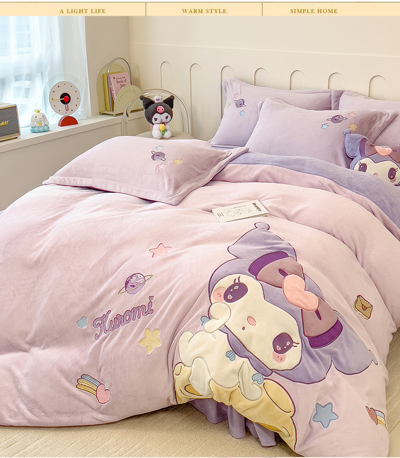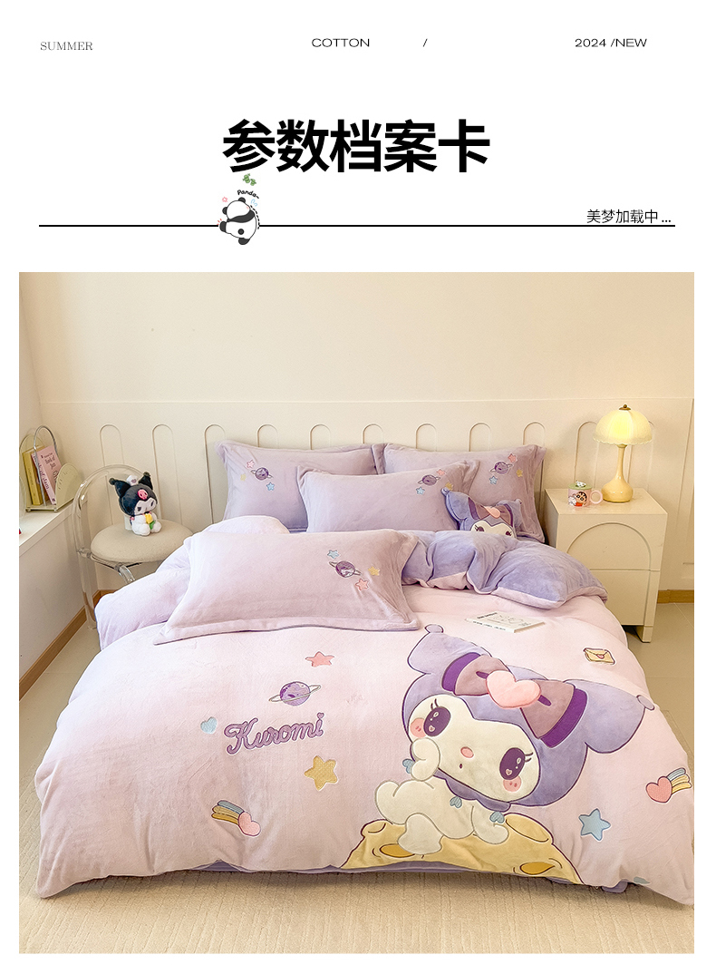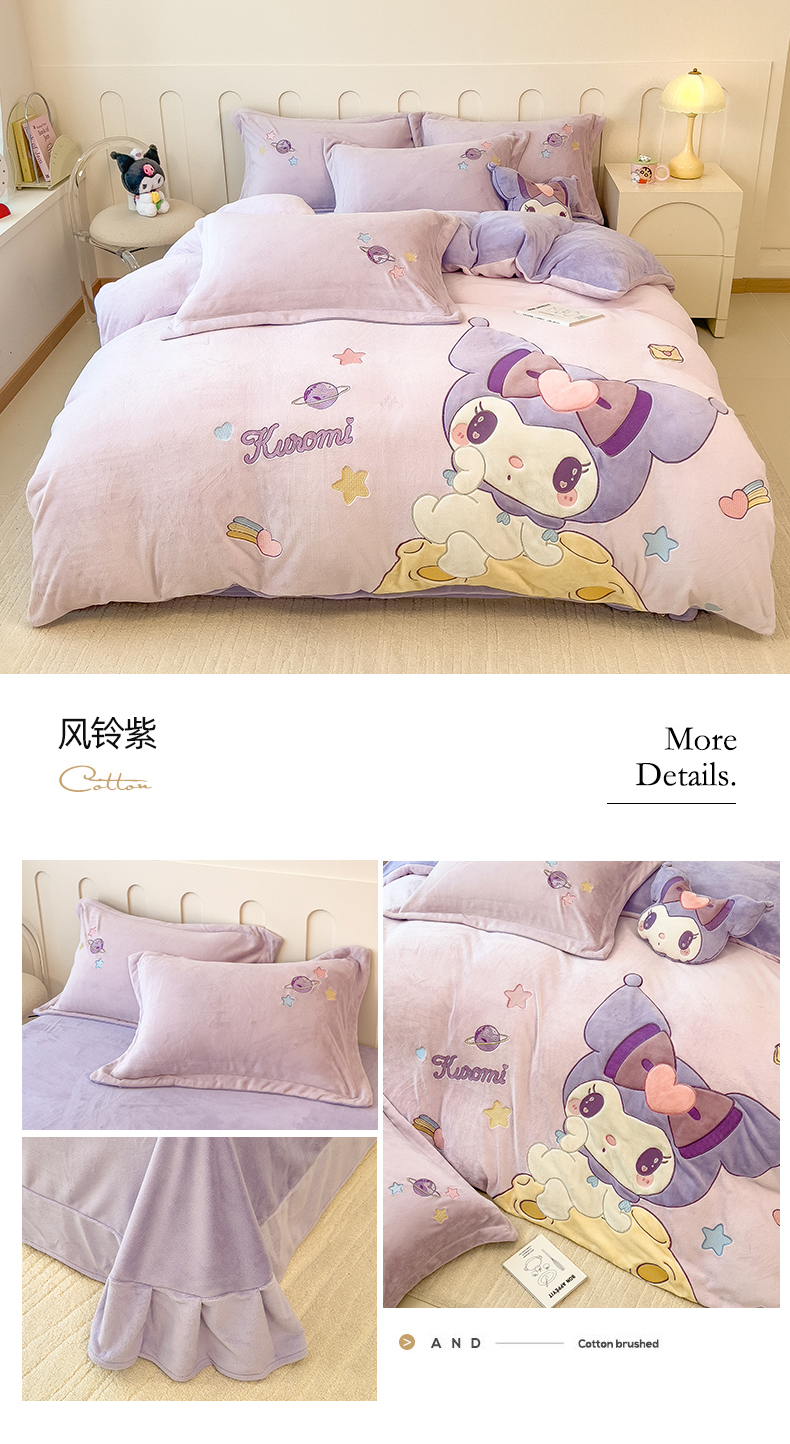 金绣美居 2025新款牛奶绒毛绒贴布绣花保暖四件套-星空女孩 风铃紫