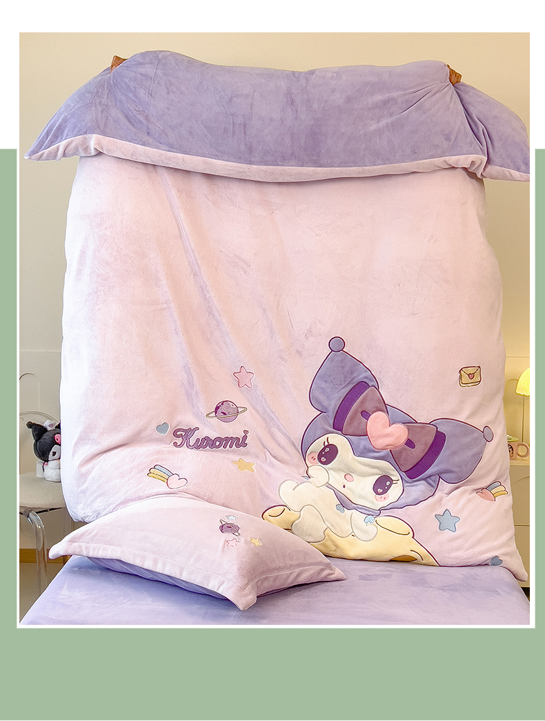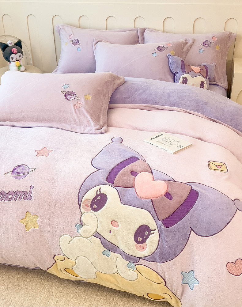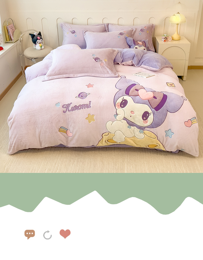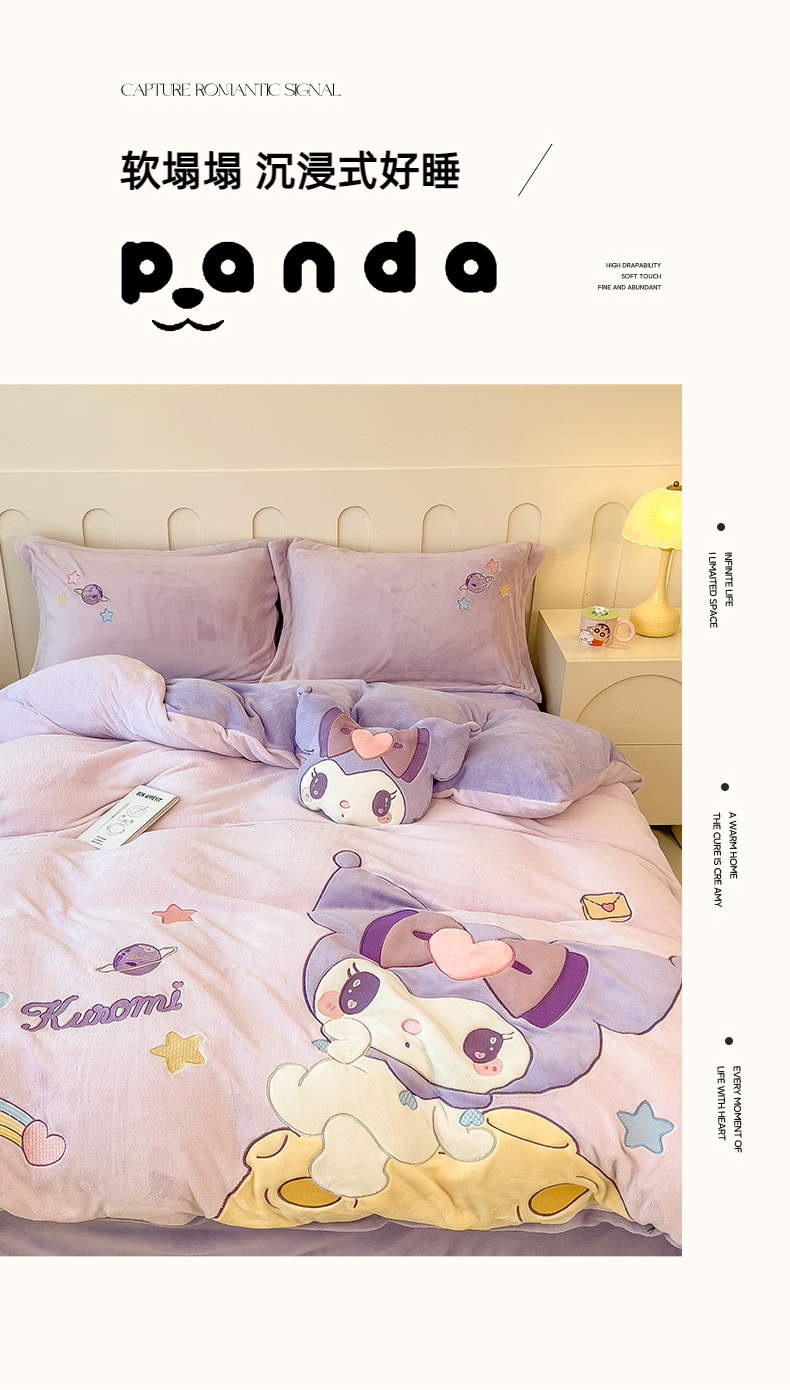 金绣美居 2025新款牛奶绒毛绒贴布绣花保暖四件套-星空女孩 风铃紫
