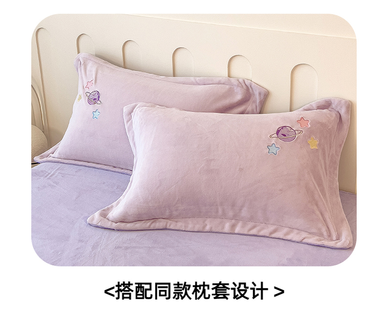 商品名称:金绣美居 2025新款牛奶绒毛绒贴布绣花保暖四件套-星空女孩 风铃紫