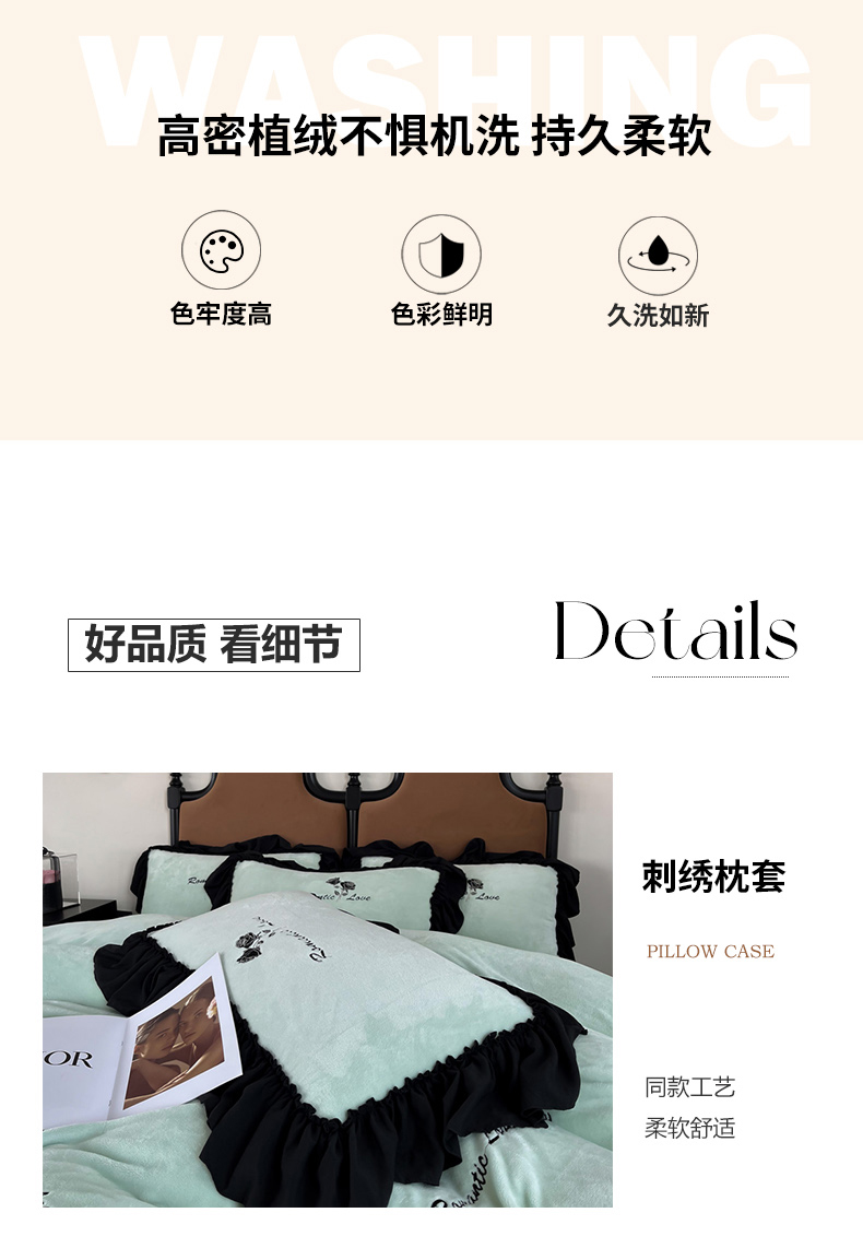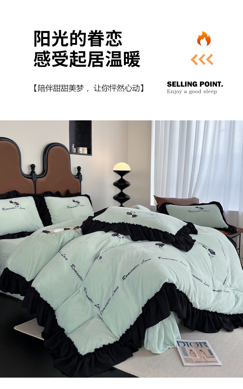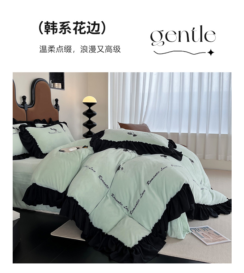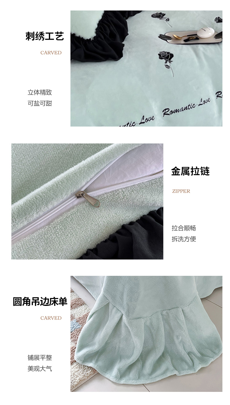 商品名称:凯美家居 2024新款法式牛奶绒刺绣四件套-欧雅 欧雅-浅绿