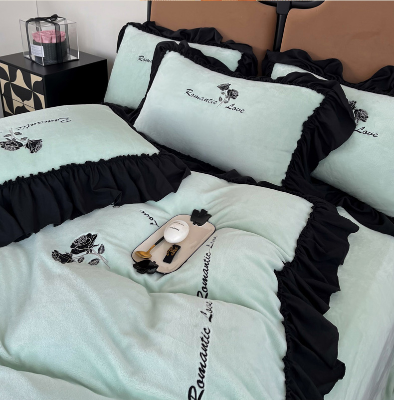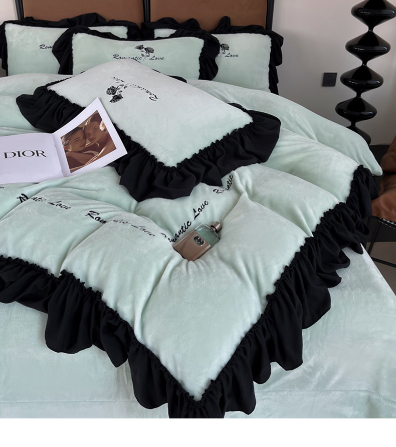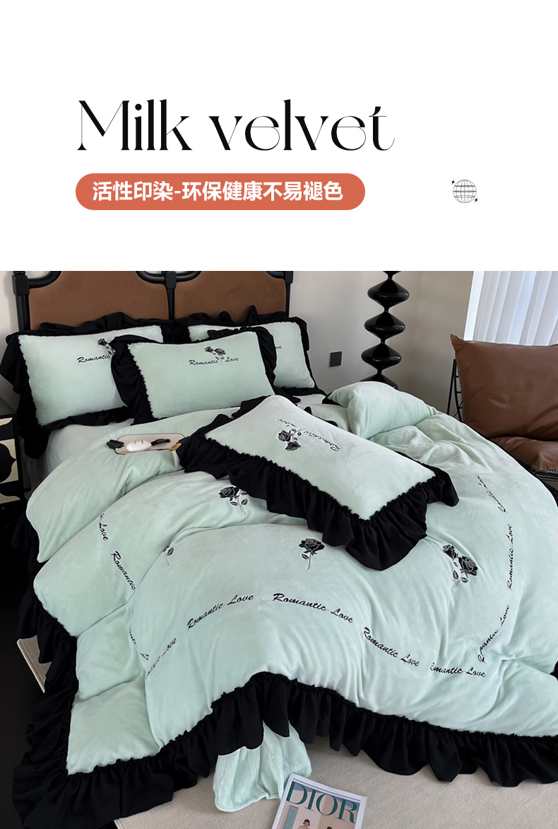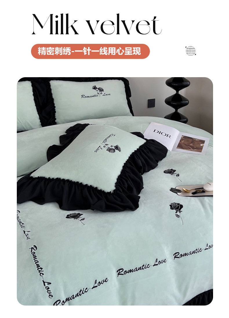 凯美家居 2024新款法式牛奶绒刺绣四件套-欧雅 欧雅-浅绿
