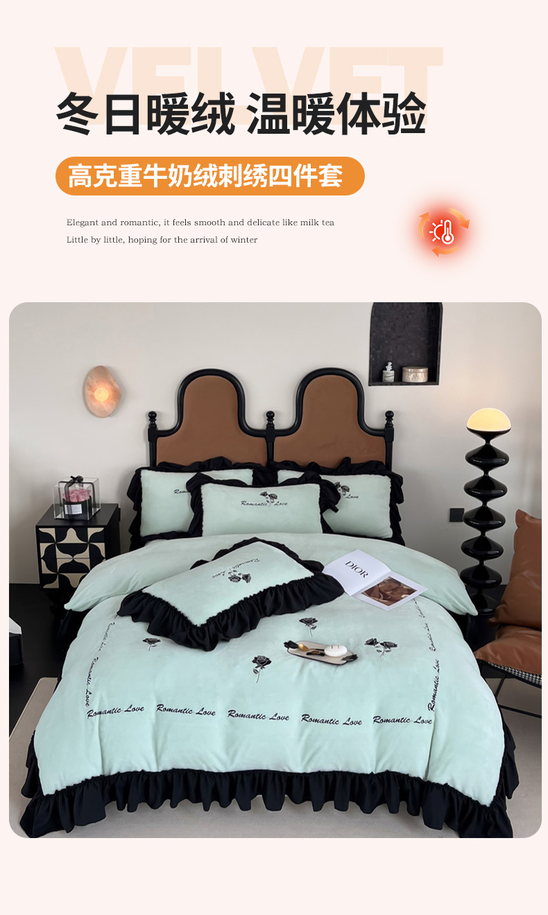 (总)凯美家居 2025新款牛奶绒重工刺绣特种工艺四件套-可露丽,可露丽-粉玉,可露丽-蓝,可露丽-奶白,可露丽-浅绿