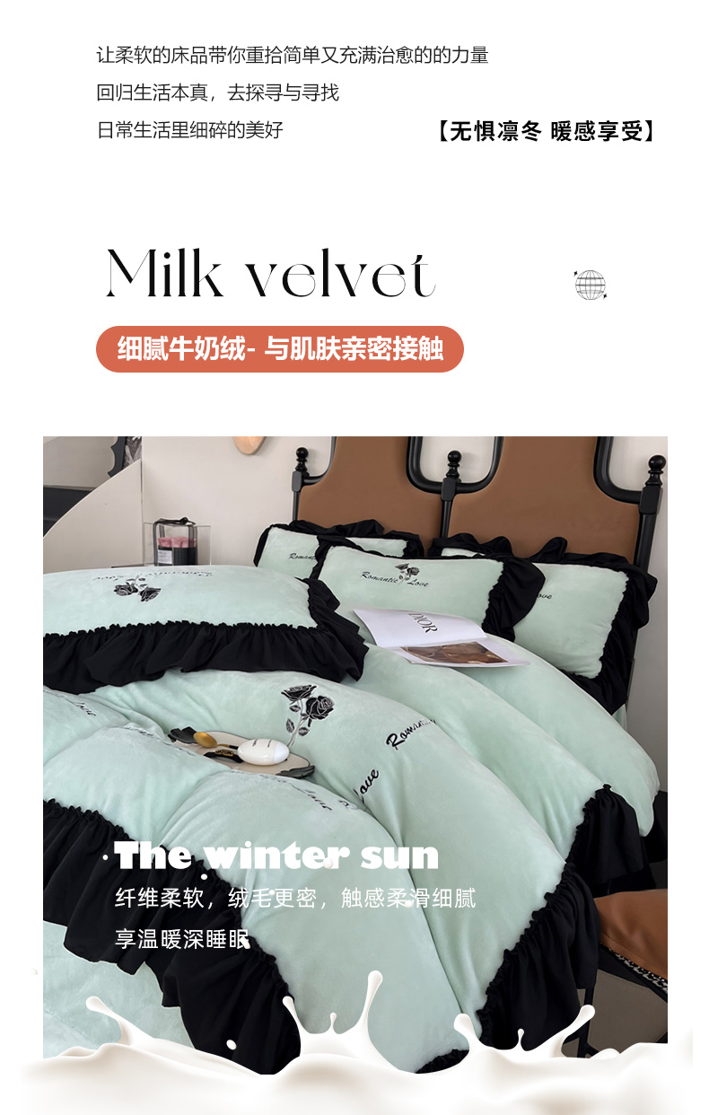 (总)凯美家居 2025新款A类牛奶绒蕾丝刺绣四件套-锦上添花,锦上添花-浅绿,锦上添花-粉玉,锦上添花-奶白,锦上添花-浅黄,锦上添花-浅蓝,锦上添花-浅紫