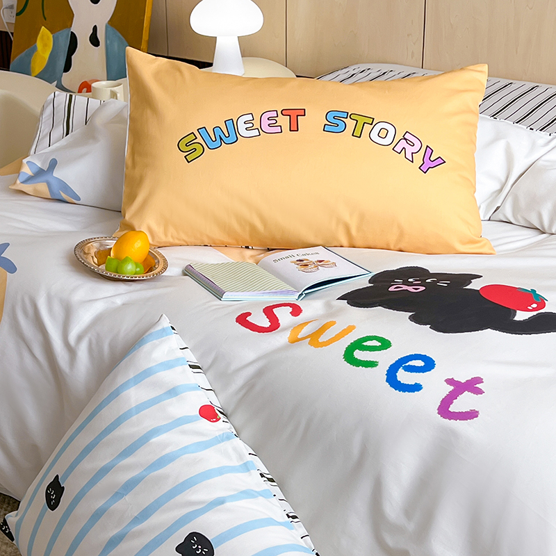 (总)时年 2021新款40S全棉印花四件套小可爱系列,贝尔先生,彩虹云朵,花西子,欢乐字母,金刚,奇思妙想,气球皮皮,树林生活