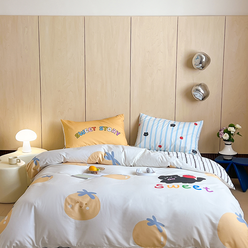 商品名称:2024新款40S设计师款全棉大版趣味印花系列四件套 小番茄