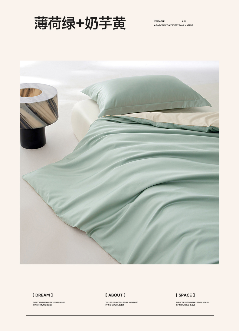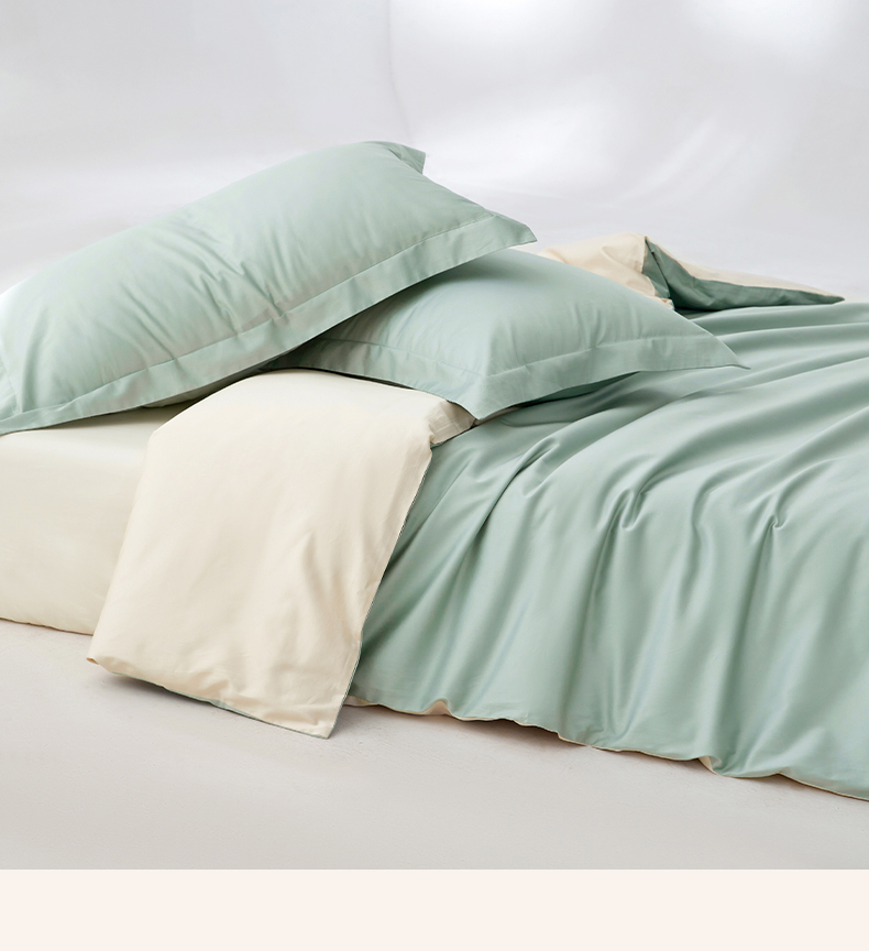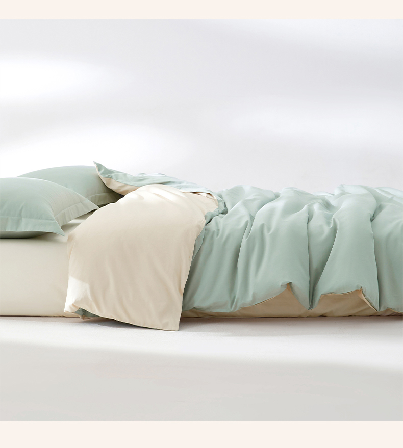 当前位置: 91家纺网 > 商品网购 > 床品套件 > 四件套 > 长绒棉四件套 > 轩和家居 2024新款简约纯色50s长绒棉贡缎四件套 薄荷绿+浅香槟