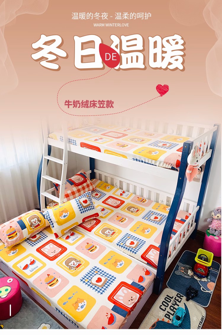 小虾米 2024新款加厚上下床牛奶绒床笠款 生日派对