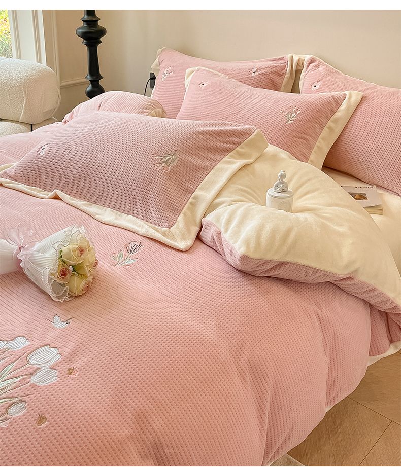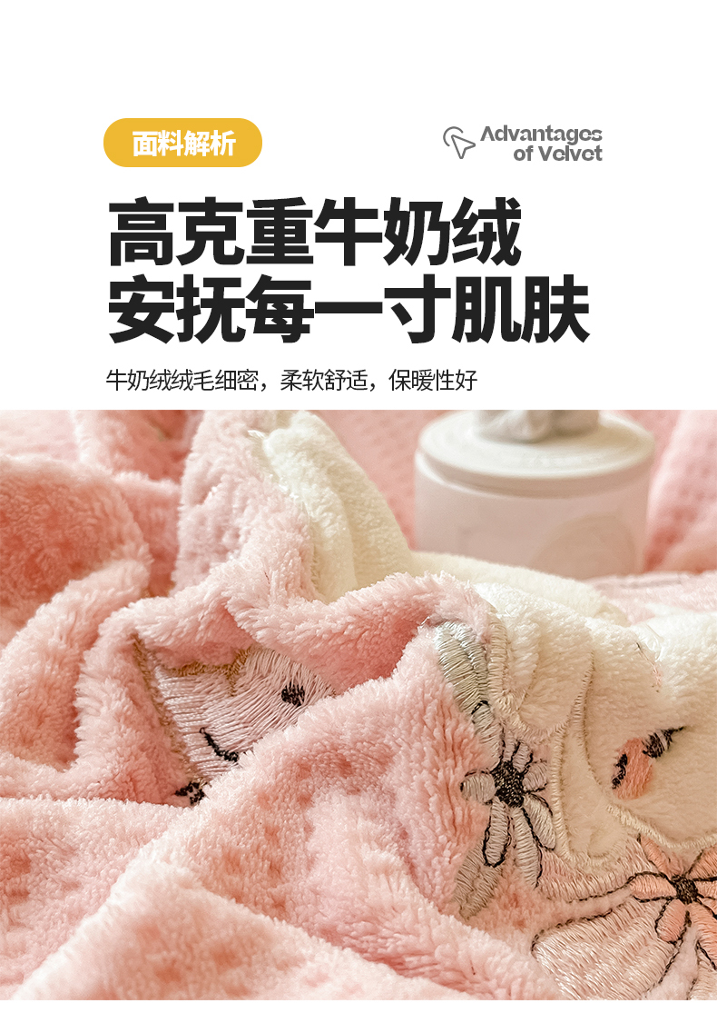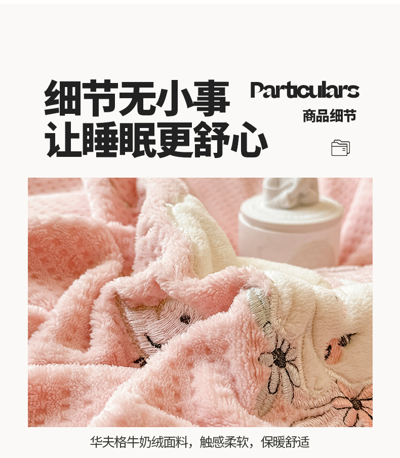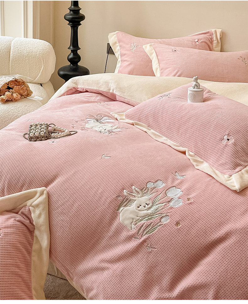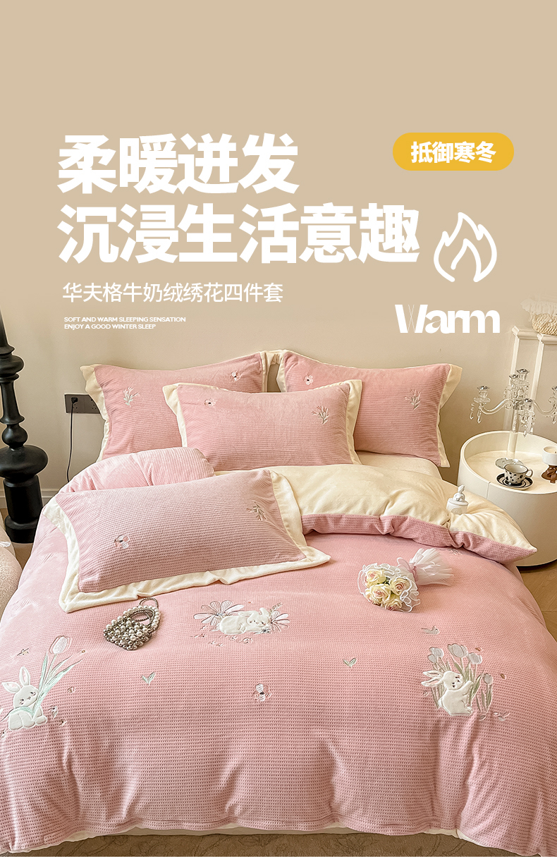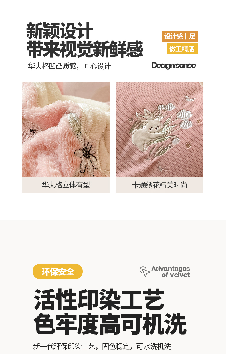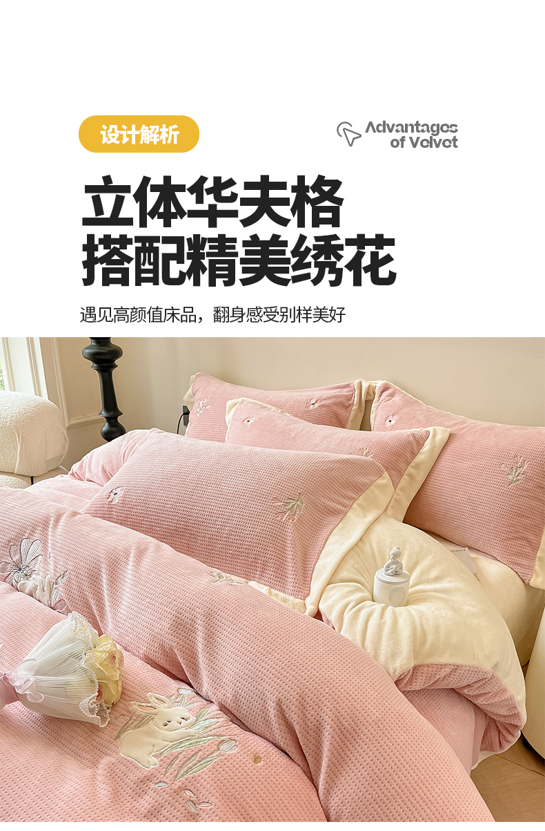 商品名称:典曼家纺 2024新款【华夫格绣花】牛奶绒四件套 甜心小兔