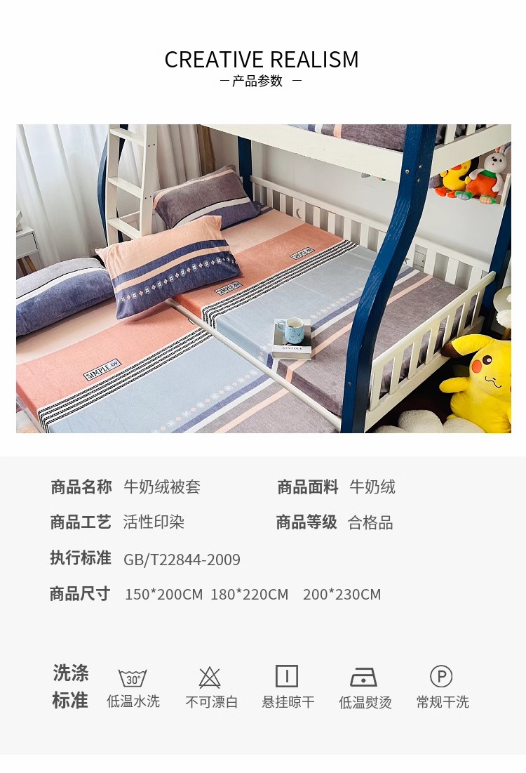 商品名称:小虾米 2024新款加厚上下床牛奶绒单被套 流年