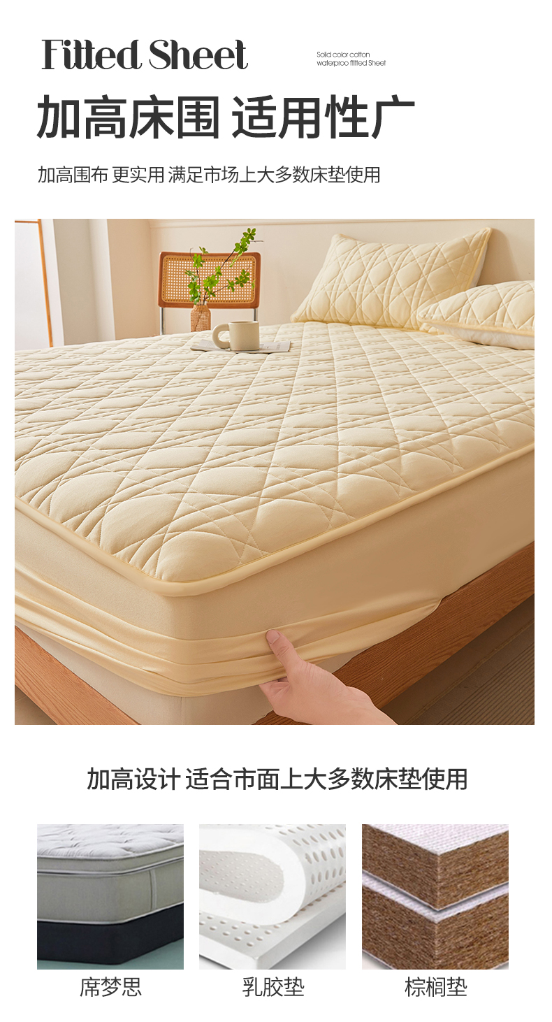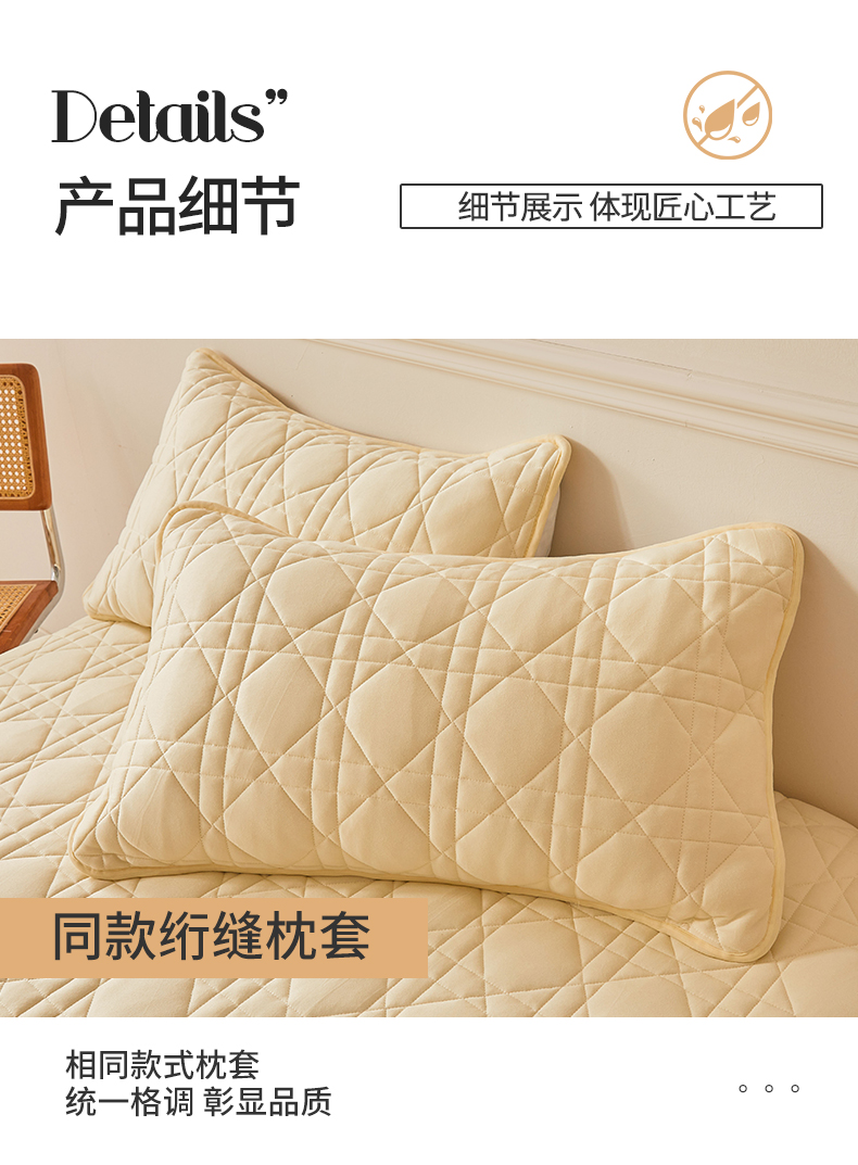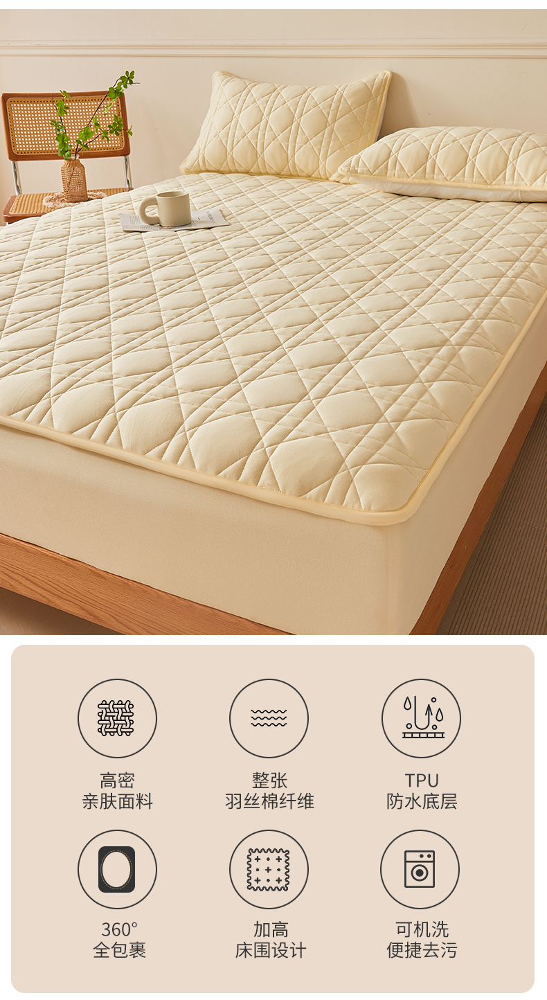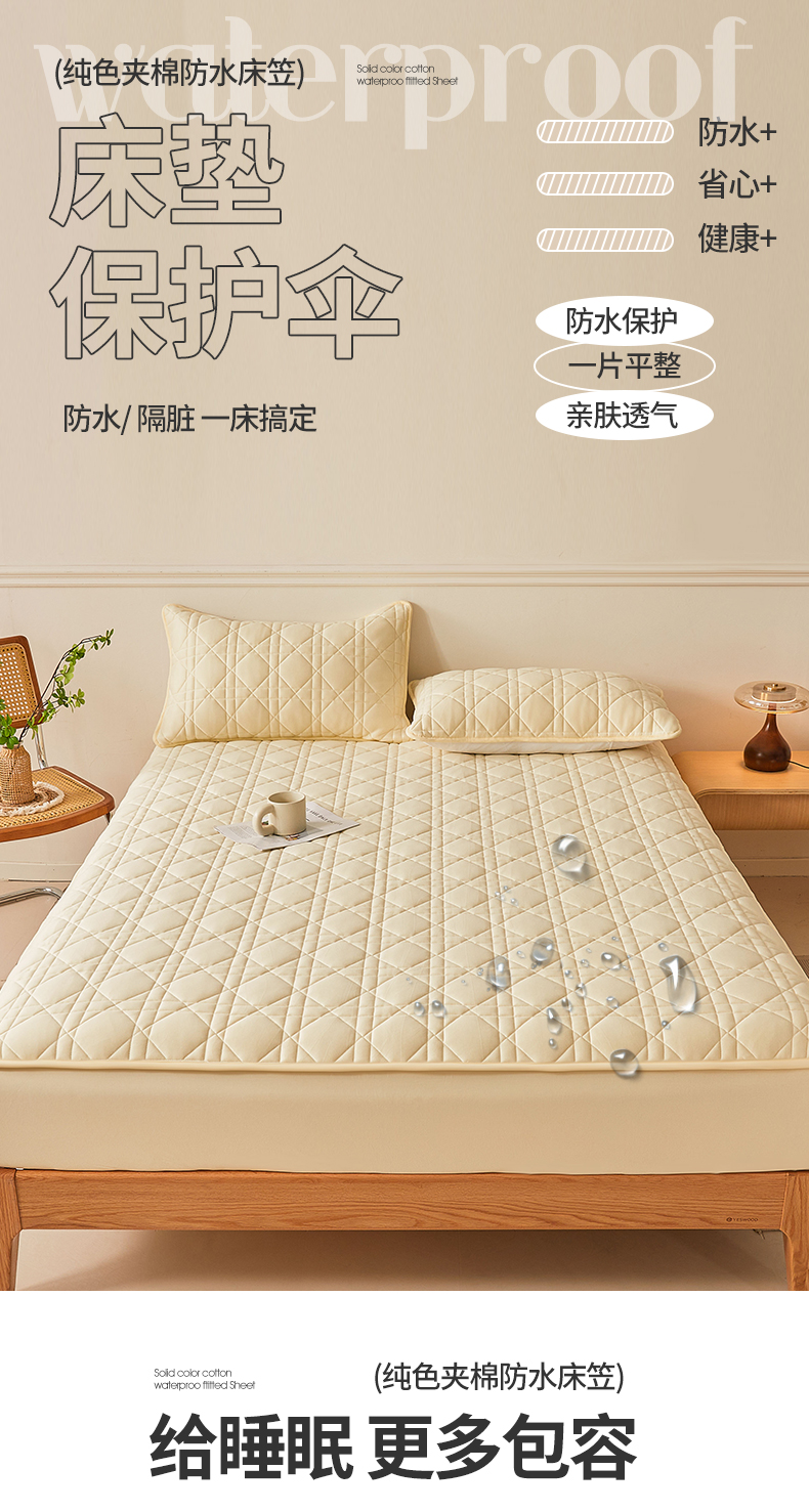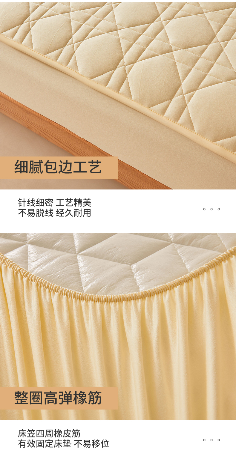 商品名称:予梦家纺 2024新款纯色夹棉防水床笠 星耀格 奶油黄