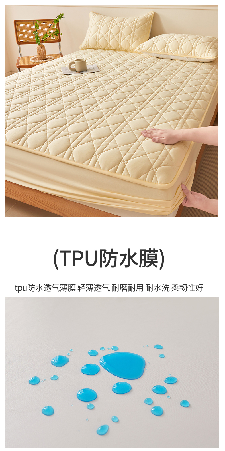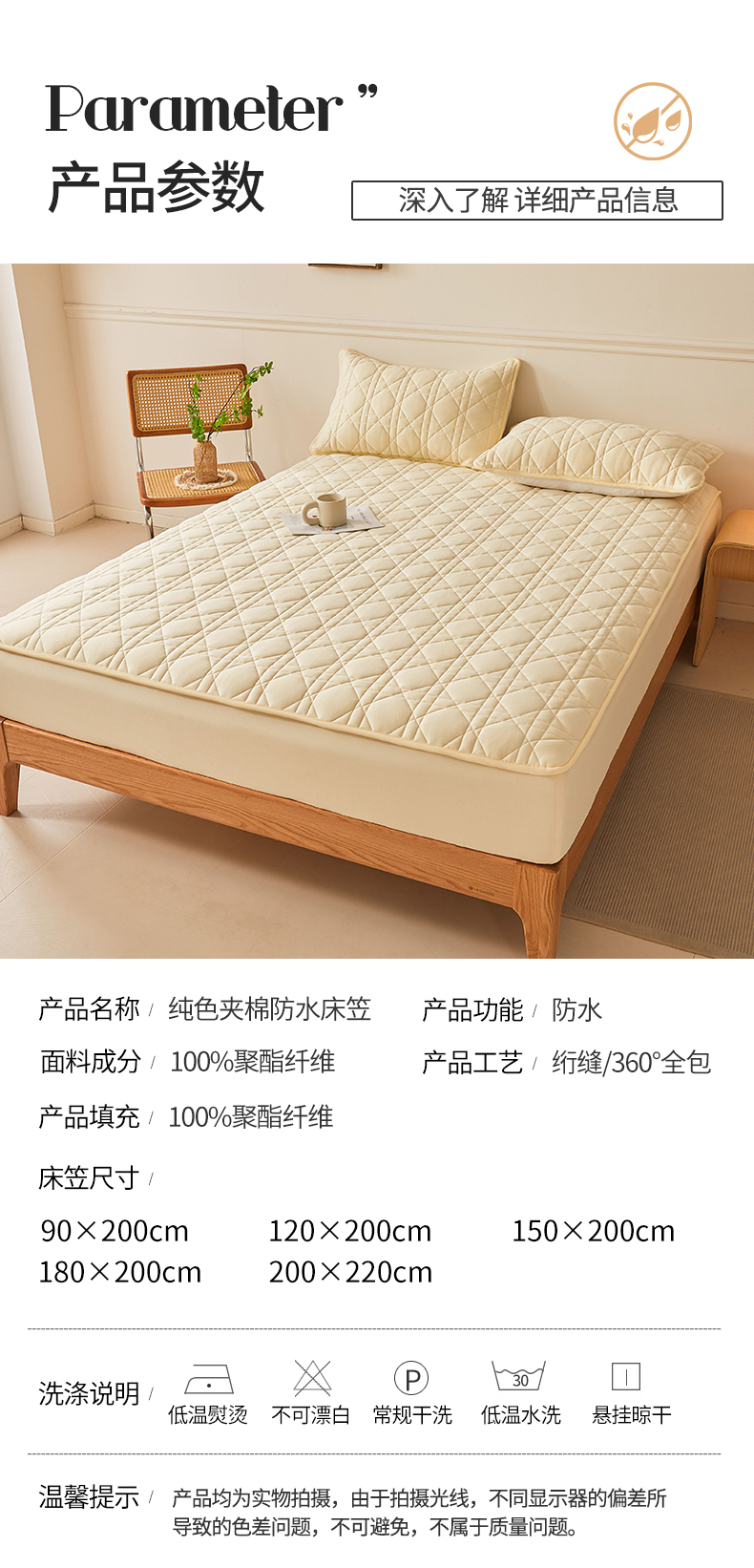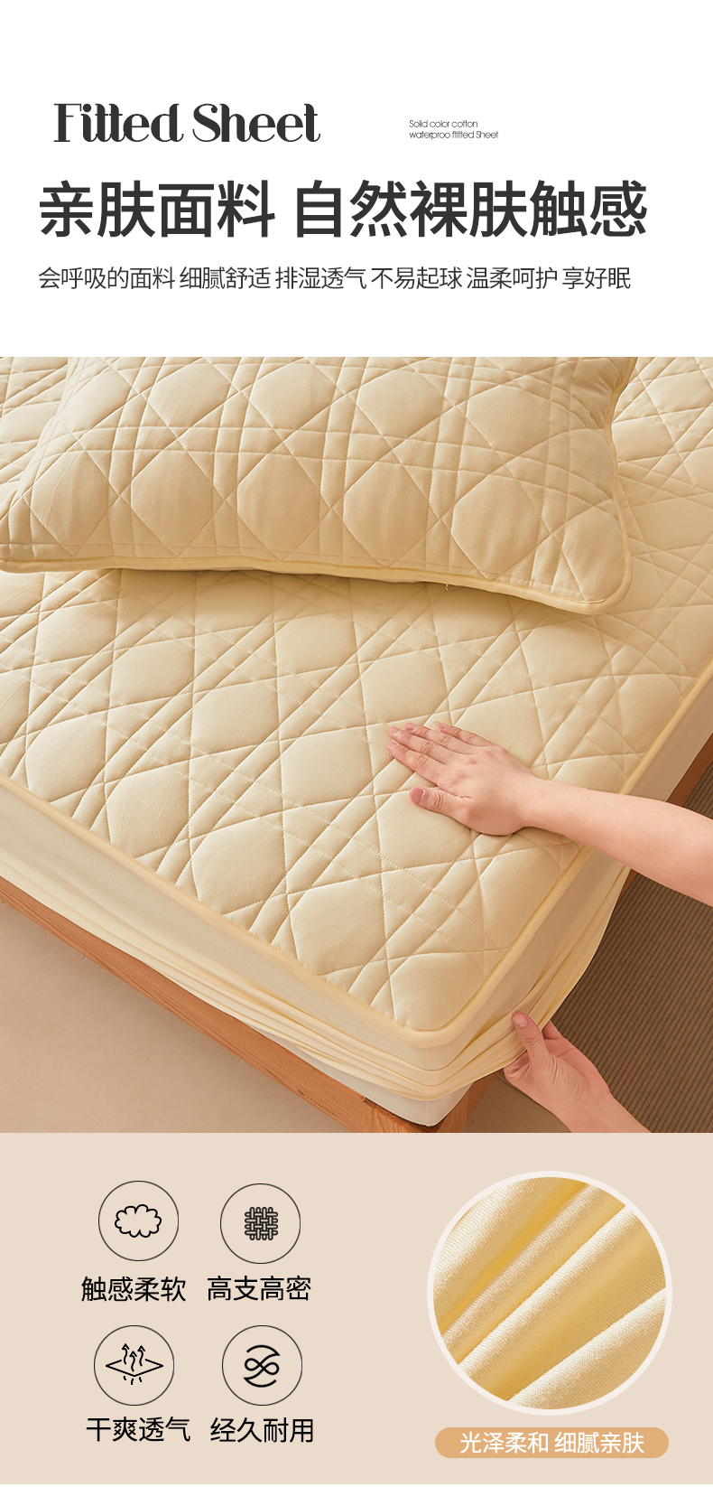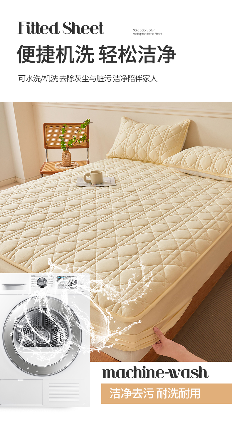 商品名称:予梦家纺 2024新款纯色夹棉防水床笠 星耀格 奶油黄