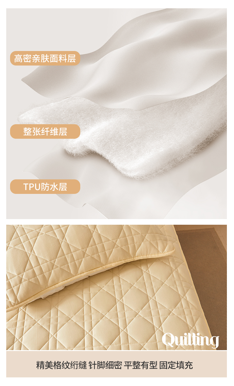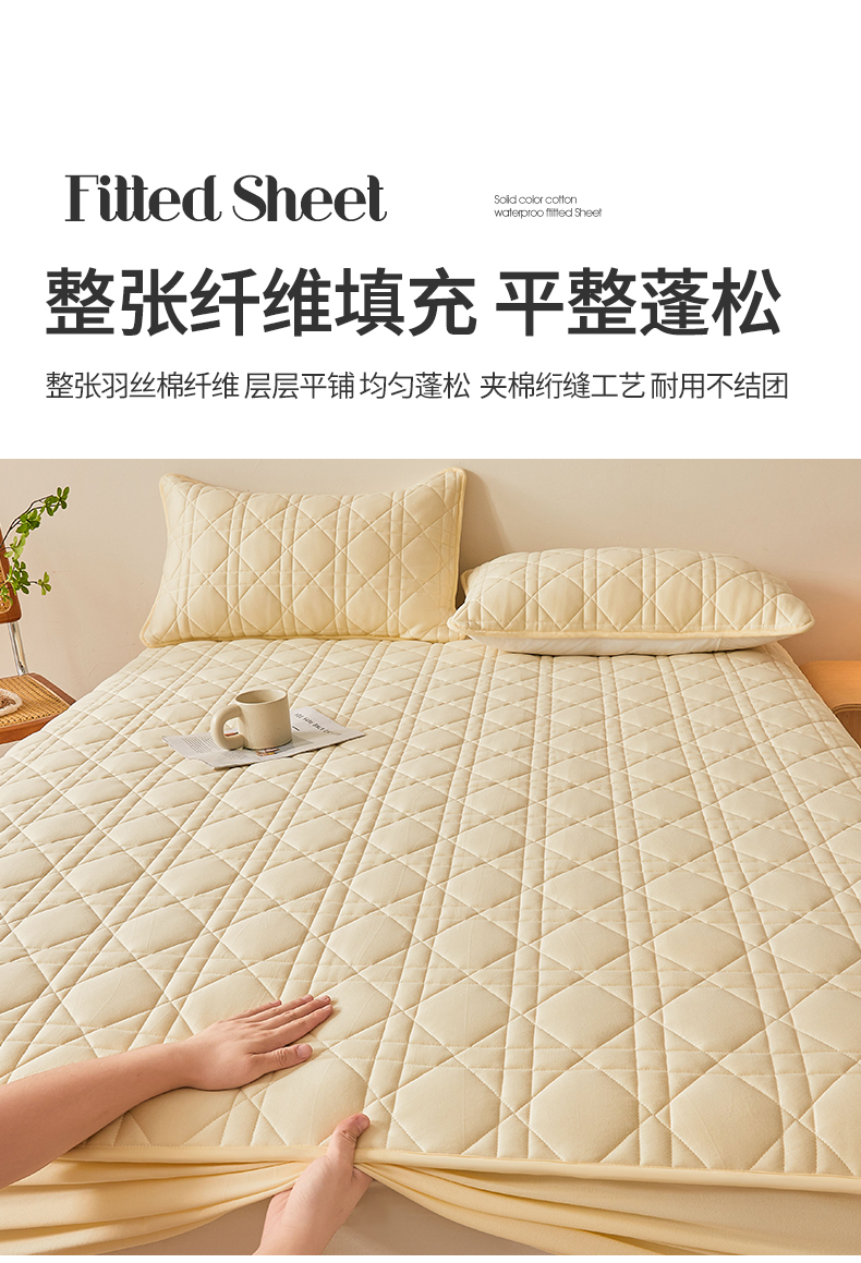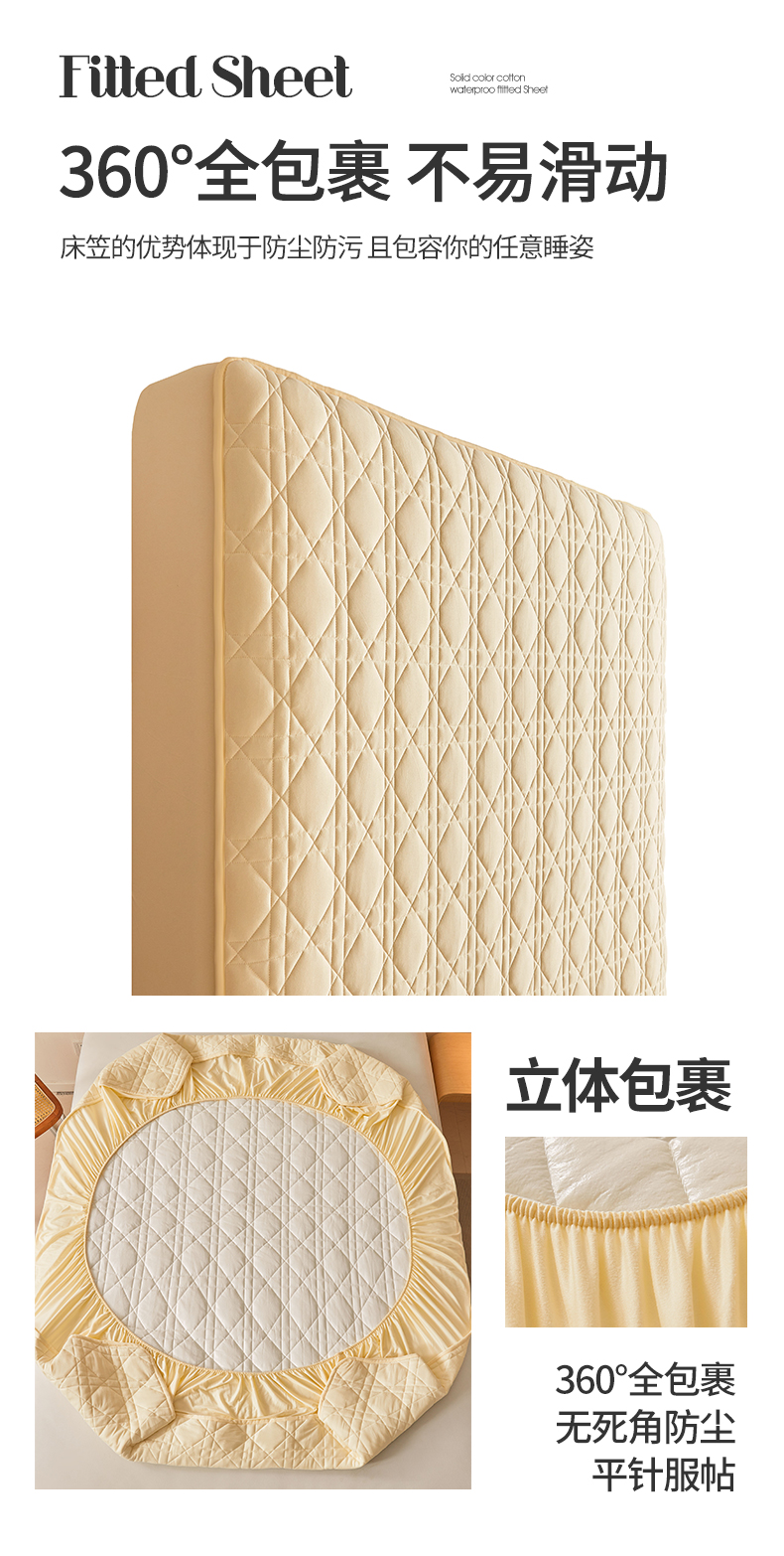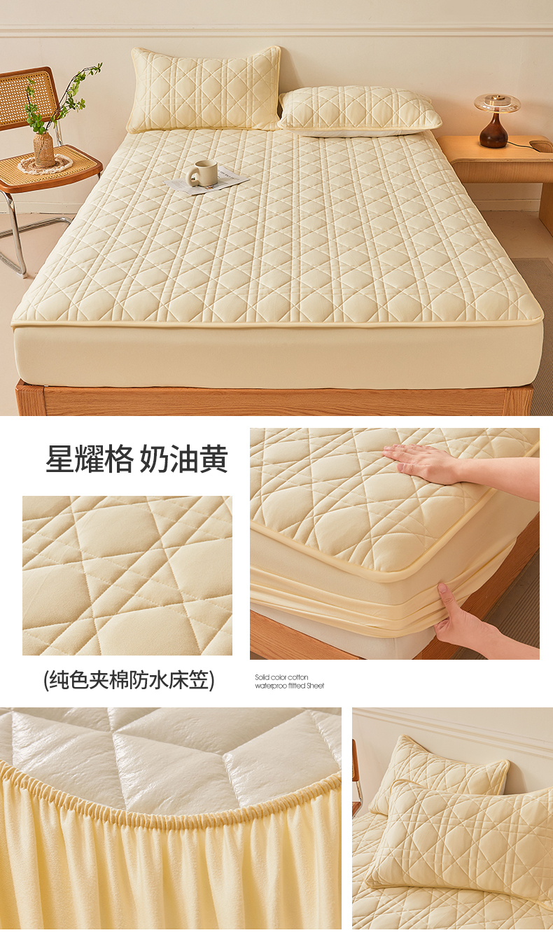 予梦家纺 2024新款纯色夹棉防水床笠 星耀格 奶油黄