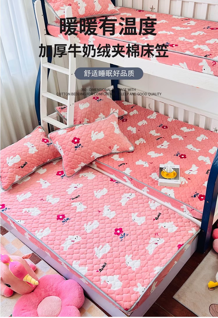 小虾米 2024新款加厚上下床牛奶绒夹棉床笠款 欢乐兔