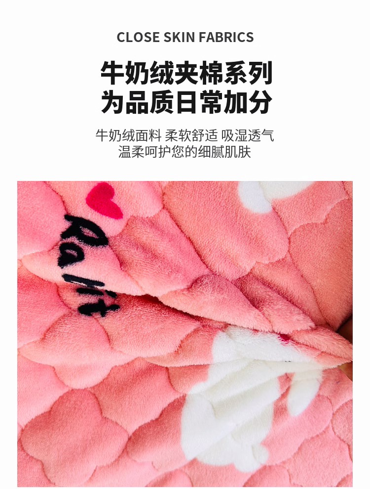 • 91家纺网 家纺一手货源 找家纺 小虾米 2024新款加厚上下床牛奶绒夹棉床笠款 欢乐兔
