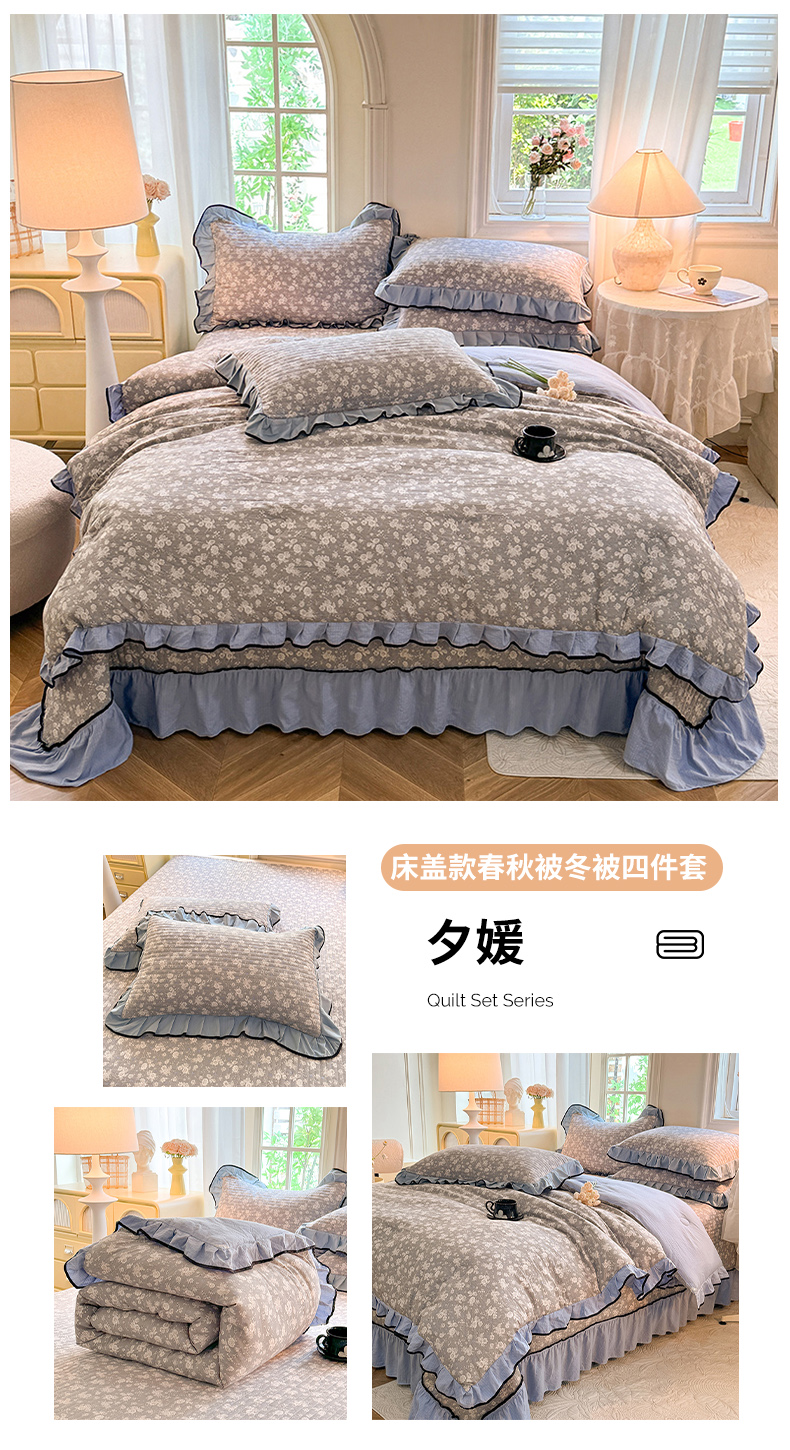 • 91家纺网 家纺一手货源 找家纺 韩约家纺 2025新款1针织棉皱皱纱床盖款夏凉被春秋被冬被四件套 夕媛