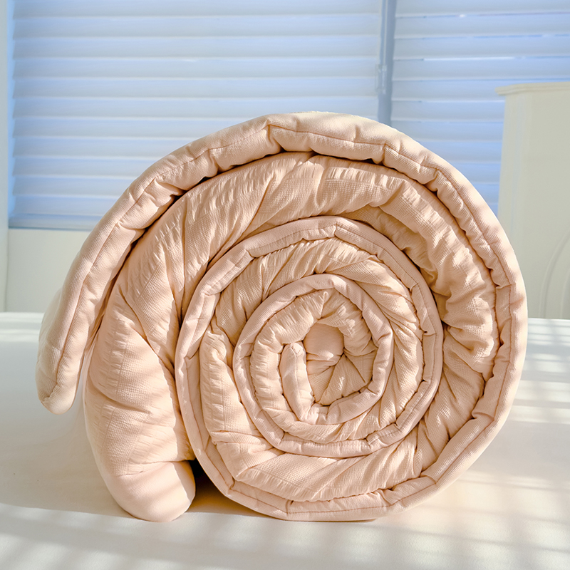 蓝冰家纺 2024新款纯色手包边泡芙棉冬被被子被芯 浅玉色