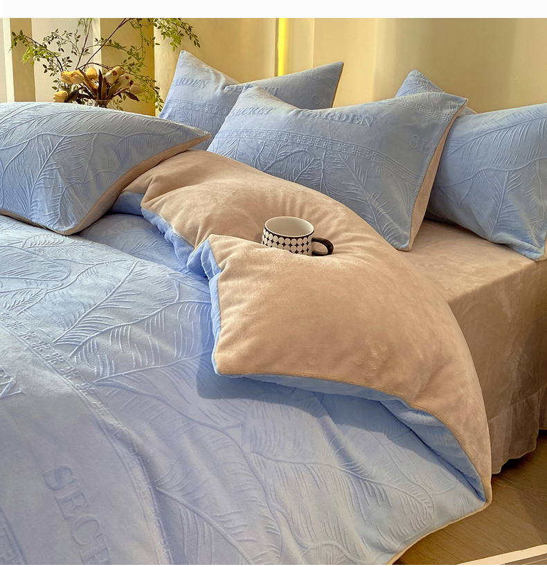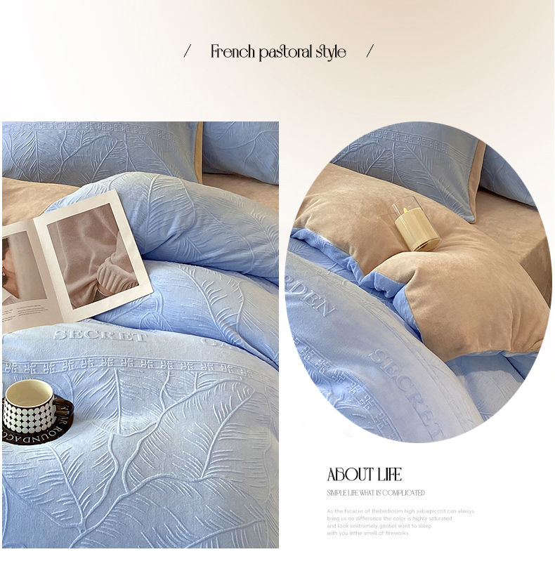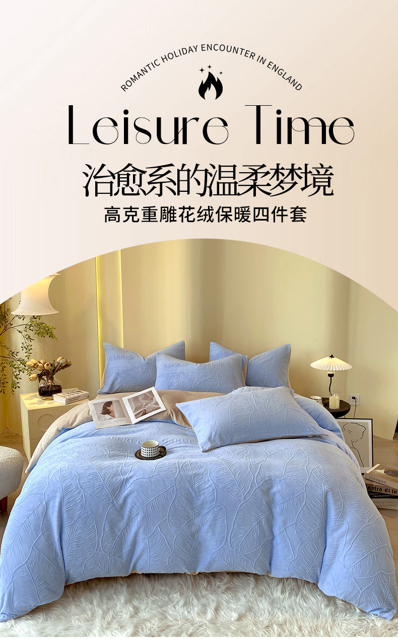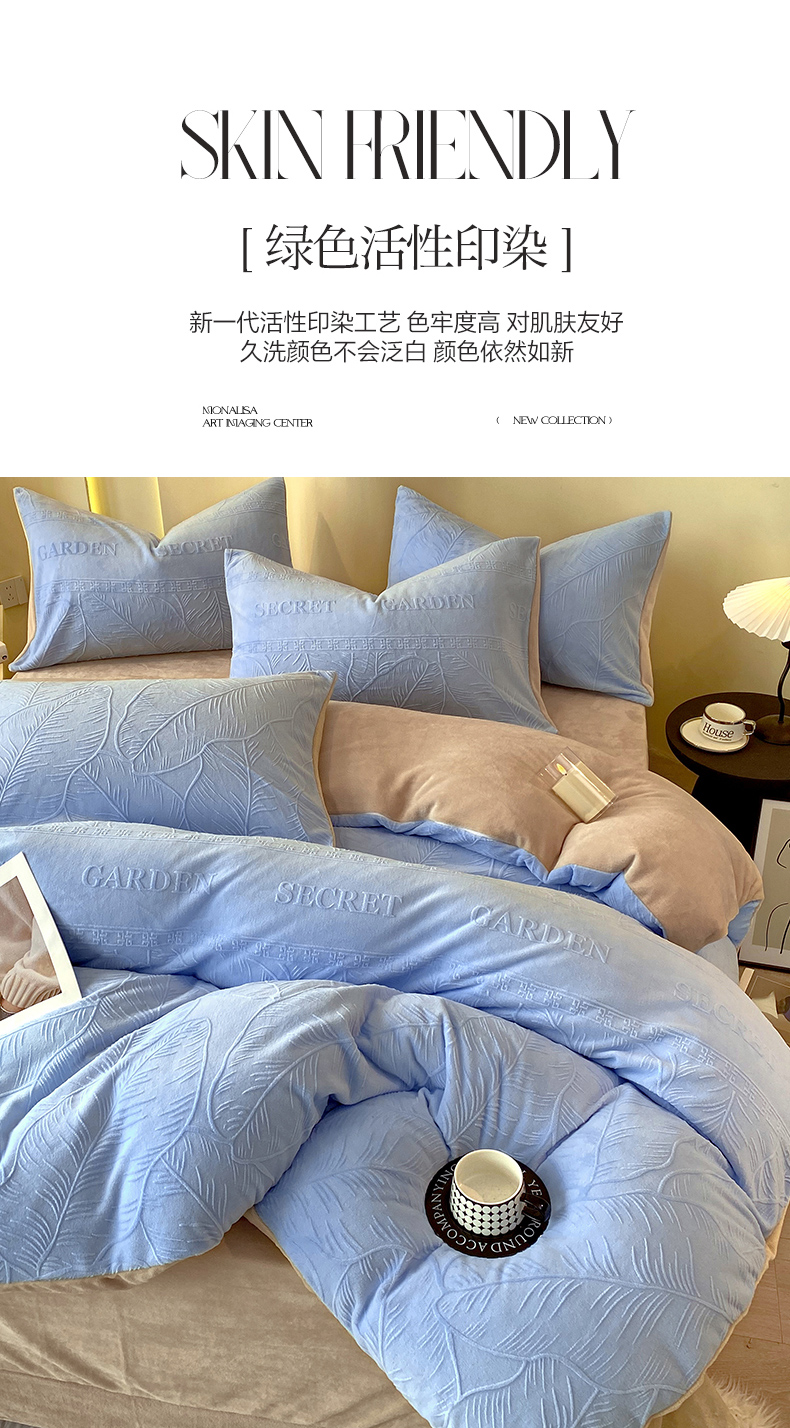 商品名称:梦尚舒 2025新款A类雕花绒牛奶绒四件套 唯美-蓝