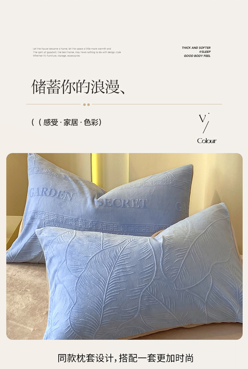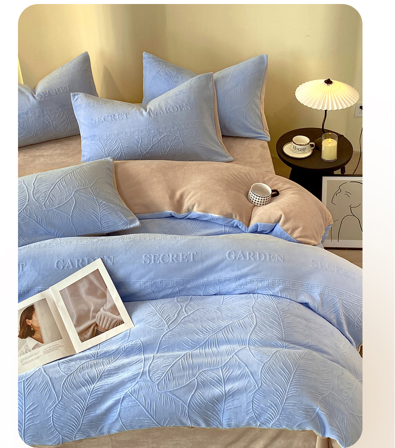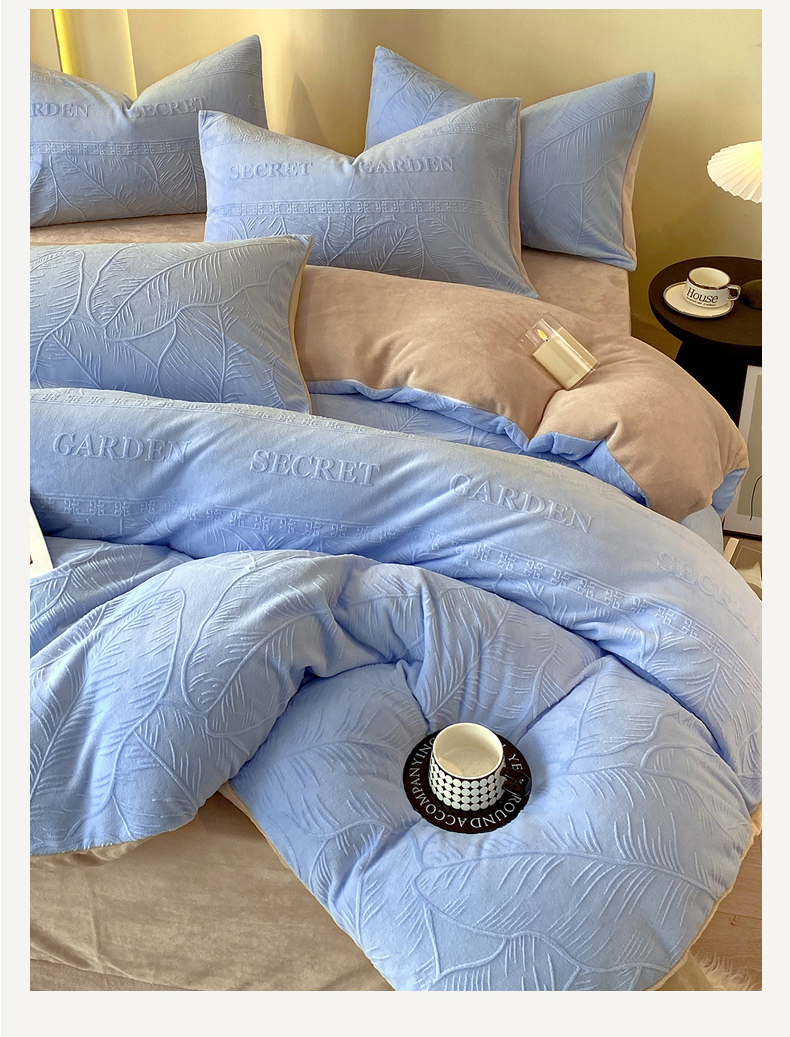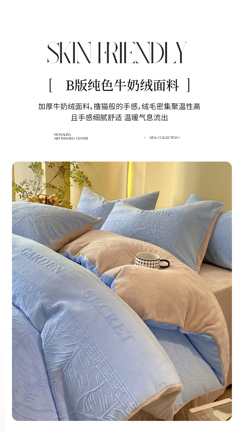 商品名称:梦尚舒 2025新款A类雕花绒牛奶绒四件套 唯美-蓝