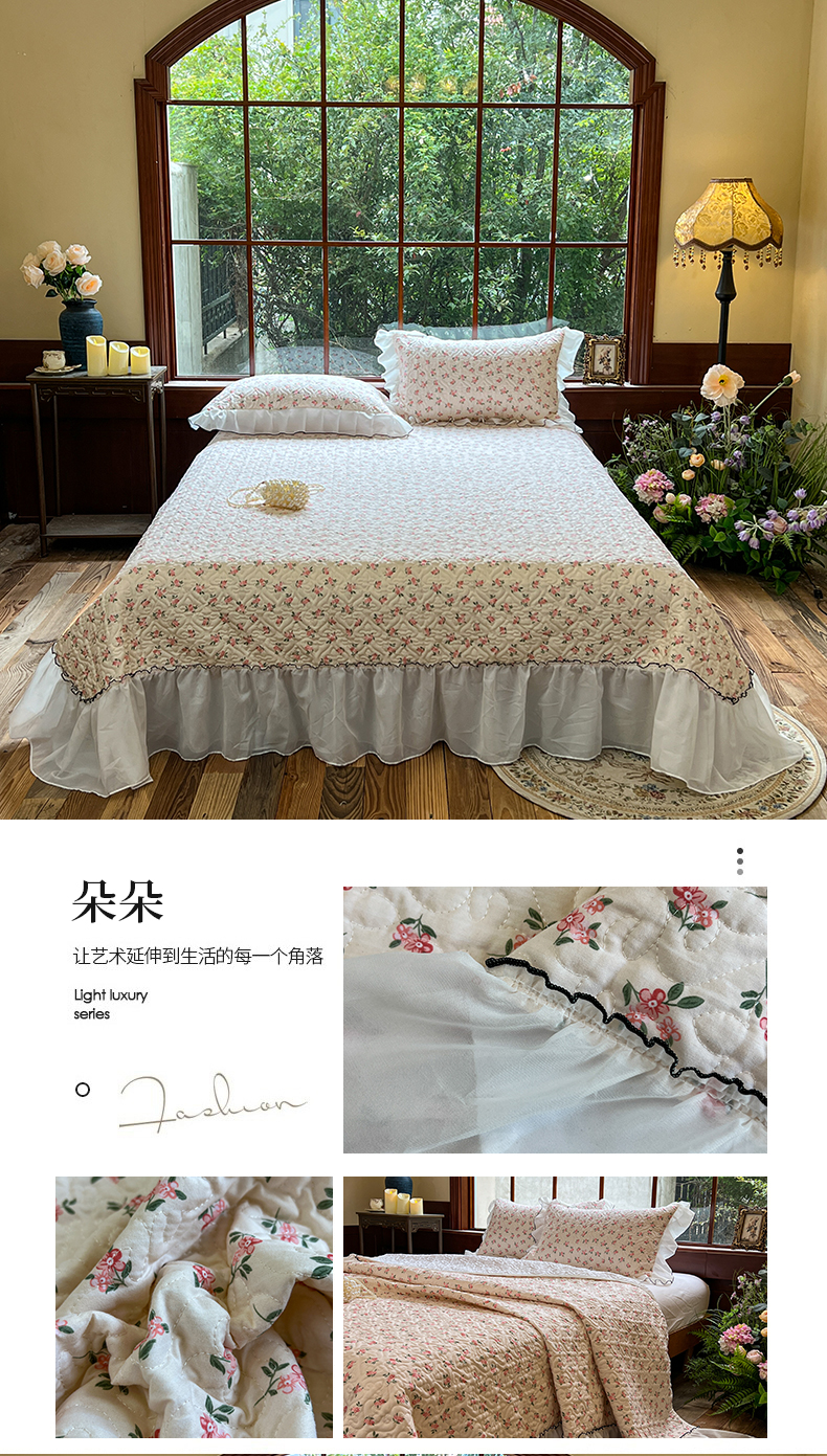 商品名称:易辰美 2024新款亲肤舒适印花夹棉床盖床裙 朵朵